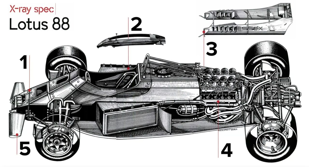 หนึ่งในนวัตกรรมทางเทคนิคของ Lotus ที่คิดค้นโดย Colin Chapman คือ รถฟอร์มูลาวันแบบแชสซีคู่ Lotus 88 ปี 1981 แม้ว่ารถ 88 จะผ่านการตรวจสอบในการแข่งขันสองสามครั้ง แต่ทีมคู่แข่งก็ออกมาประท้วง FIA จนสุดท้าย Lotus 88 ไม่ได้รับอนุญาตให้แข่งขันอีกต่อไป