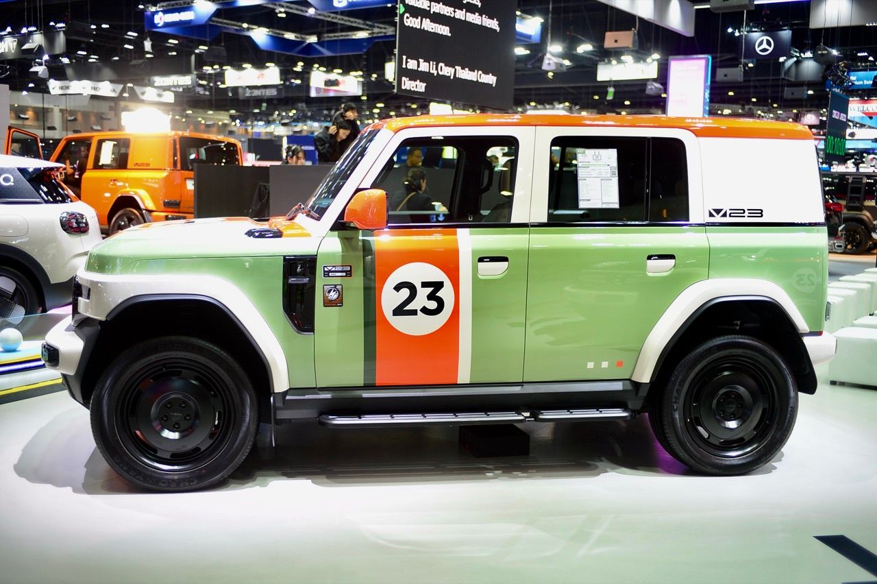 CHERY รุ่น V23 RETROCUBE EDITION รถเอสยูวี ไฟฟ้า 100% ขับเคลื่อน 4 ล้อ กำลังสูงสุด 211 แรงม้า แรงบิดสูงสุด 292 นิวตันเมตร แบตเตอรี่ขนาด 81.76 kWh ระยะการขับขี่สูงสุด 430 กิโลเมตร (มาตรฐาน NEDC) พร้อมชุดแต่งพิเศษ 13 ชิ้น* ประกอบด้วย กรอบกระจังหน้า คิ้วตกแต่งฝากระโปรง ไฟสปอตไลต์ทรงกลม 5 จุด บันไดข้างซ้าย – ขวาลายไม้ ชุดตกแต่งด้านข้างซ้าย-ขวา บันไดหลังคาโครงสร้างสเตนเลส แร็คหลังคา ชิ้นส่วนตกแต่งบังโคลนหน้าซ้าย-ขวา ชิ้นส่วนตกแต่งบังโคลนหลังซ้าย-ขวา แนวคิด “Classic Never Fades” ราคา 1,039,900 บาท ส่งมอบรถได้ภายในเดือนมกราคม 2569
