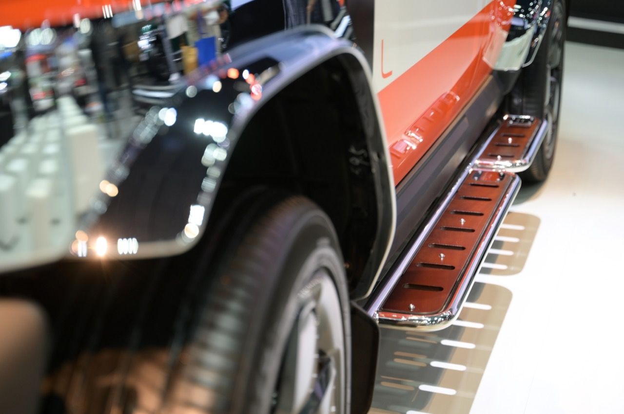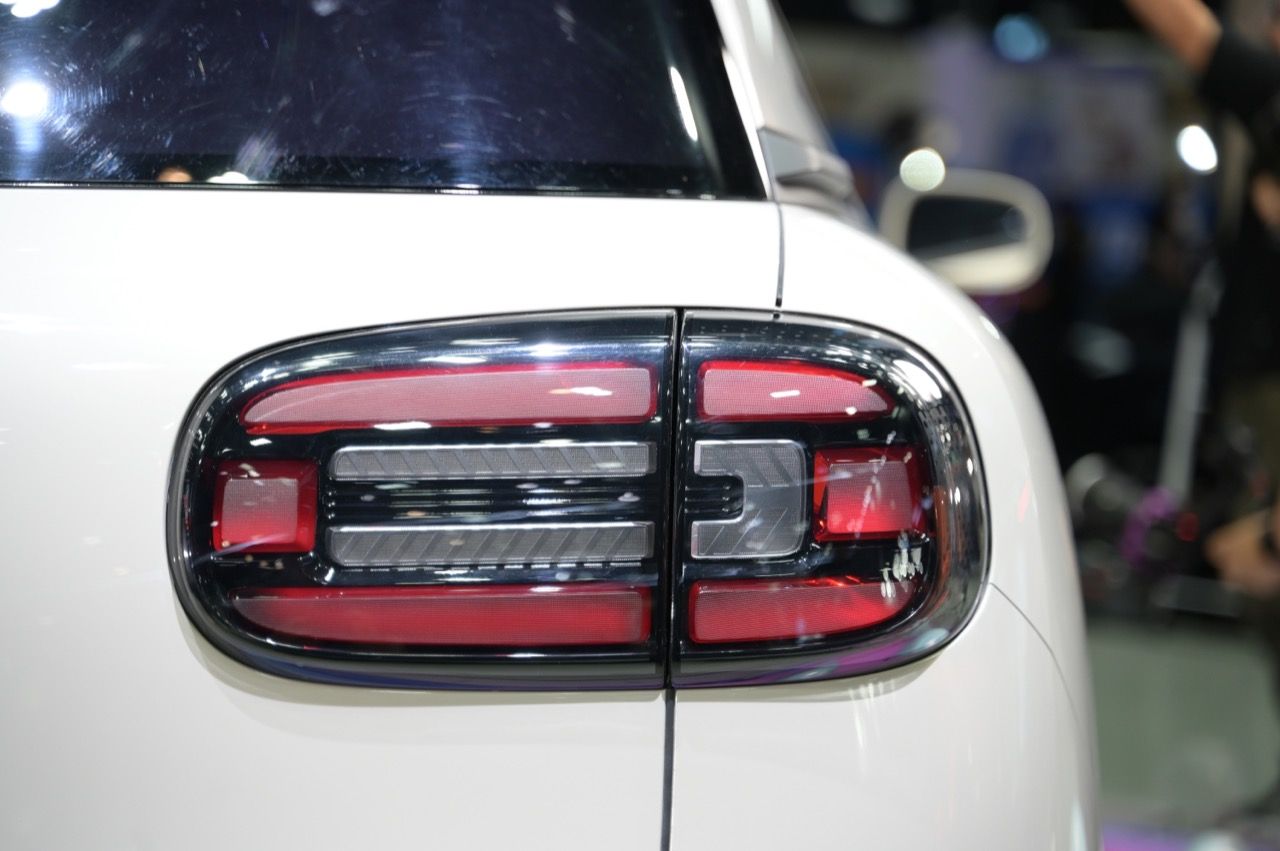 ทรงกล่องสไตล์เรโทร (Boxy Design) กันชนหน้า-หลังทรงมน โคมไฟทรงกลม ซุ้มล้อและบันได กล่องเก็บสัมภาระบริเวณประตูท้ายพร้อมไฟเบรกดวงที่สาม แรงบันดาลใจจาก LEGO ความสูงใต้ท้องรถ210 มม. ล้ออัลลอยสีดำรมควันขนาด 19 นิ้ว สำหรับรุ่น PLAY และ PLUS และล้อขนาด 21 นิ้วสำหรับรุ่น PEAK ประตูท้ายออกแบบให้เปิดได้กว้างเพื่อรองรับการขนย้ายสัมภาระ