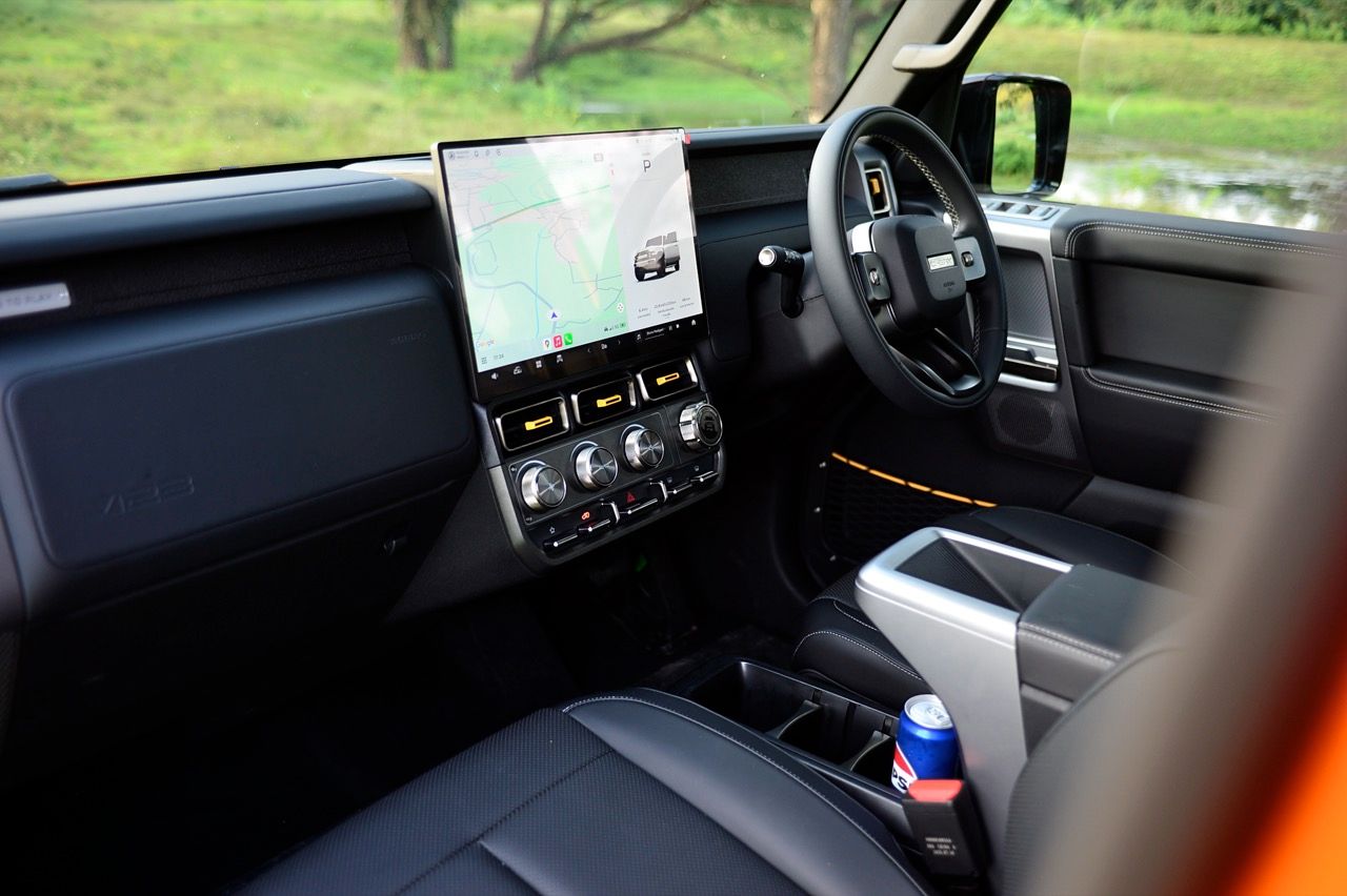 ทัศนวิสัยในห้องโดยสารที่ให้มุมมองกว้าง ปรับเบาะนั่งสูง 370 มม. หลังคาทรงสูง ทำให้พื้นที่ในห้องโดยสารโปร่ง พื้นที่เก็บสัมภาระด้านหลังมีช่องเก็บของทรงลึกแบบซ่อน เบาะนั่งสบาย พับเบาะคู่หน้าได้ 180 องศา เพิ่มบริเวณที่นั่ง และ เบาะคู่หลังสามารถปรับแบบพับเรียบ 50:50 เพื่อเพิ่มพื้นที่บรรทุก เทคโนโลยีหน้าจอทัชสกรีนขนาดกว้าง 15.4 นิ้ว รองรับทั้ง Apple Car Play และ Android Auto เชื่อมต่อ Bluetooth แสดงภาพจากกล้องมุมมองรอบทิศทาง 540 องศา แผงควบคุมบริเวณคอนโซลเลือกการขับขี่ได้ 6 โหมด ปรับอุณหภูมิ แรงลม ระดับเสียง ช่องแอร์สีเหลือง ช่องเก็บสัมภาระตาข่ายและช่องเก็บของที่ช่วยให้เก็บของได้หลากหลายชนิดและเป็นระเบียบ