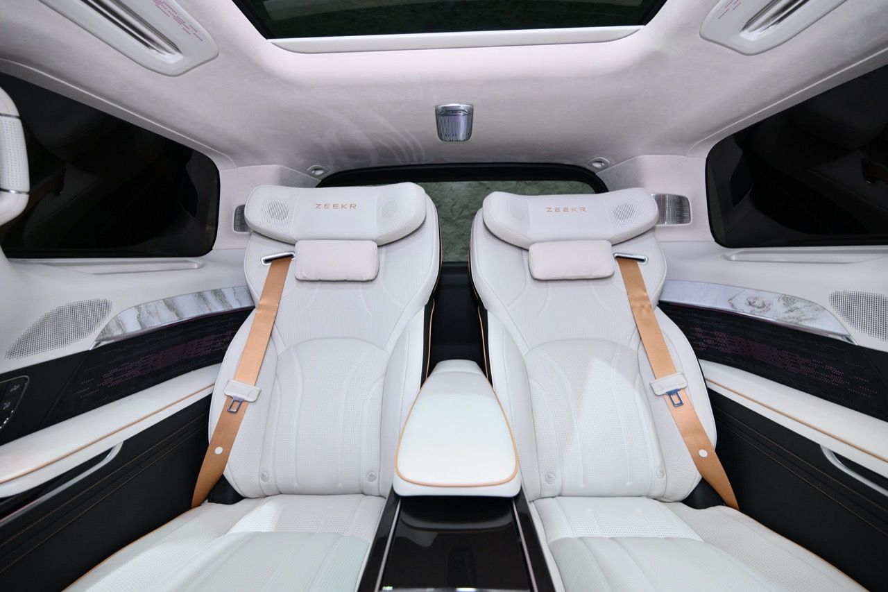 คอนเซ็ปต์ห้องโดยสารระดับ First Class ที่มอบสัมผัสในแบบฉบับอัลตราลักชูรีทุกรายละเอียด ด้วยความนุ่มสบายจากผิวสัมผัสของหนัง Nappa เกรดพรีเมียม และสามารถปรับได้ 24 ทิศทาง พร้อมระบบนวด ระบายอากาศ การปรับเอนนอน โอบรับผู้โดยสารได้อย่างสมบูรณ์แบบภายในห้องโดยสารปูด้วยพรมขนสัตว์นุ่มพิเศษที่ได้รับการคัดสรรมาเป็นอย่างดี และยกระดับความเป็นส่วนตัวขั้นสูงสุดด้วย Partition ที่แยกระหว่างห้องโดยสารและพื้นที่สำหรับคนขับ พร้อมหน้าจอ LED ขนาดใหญ่ถึง 43 นิ้ว ระบบเสียงรอบทิศทางมากถึง 30ตำแหน่งจาก Yamahaเพื่อมอบประสบการณ์การเดินทางที่ดีที่สุดเท่าที่เคยมีมา ห้องโดยสารภายในตกแต่งด้วยหินจากเทือกเขาหิมาลัยผ่านการขัดเกลาอย่างประณีต มีลวดลายเฉพาะตัวที่สวิตช์สั่งการ ตกแต่งด้วยคริสตัล เพื่อมอบสัมผัสแห่งความหรูหรา สู่งานฝีมือระดับ Masterpiece โดย ZEEKR 009 GRAND มอบขุมพลังระบบมอเตอร์ไฟฟ้าคู่ กำลังสูงสุด 778 แรงม้า มอบการขับขี่ได้มากถึง 702 กิโลเมตร ต่อการชาร์จเต็มหนึ่งครั้งตามมาตรฐาน CLTC และความปลอดภัยจากโครงสร้างตัวถัง Single Piece Die Cast แบบ C-Ring บริเวณห้องโดยสาร พร้อมปกป้องผู้โดยสารในทุกการเดินทาง