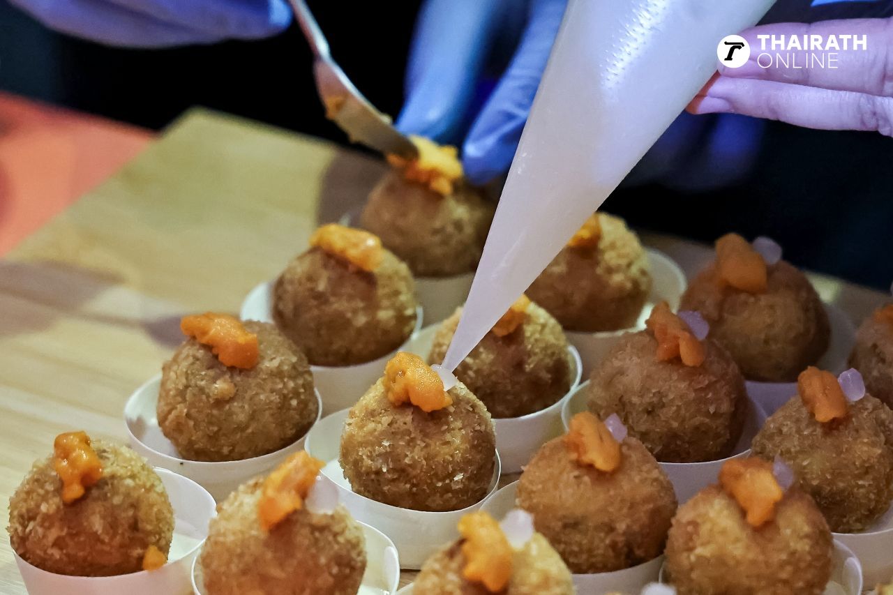 ภายในงาน นอกจากจะมีร้านค้าเมรัย ที่รวมสุราชุมชนและคราฟต์เบียร์ไทยกว่า 50 แบรนด์จากทุกภาคทั่วไทยแล้ว ผู้ที่ลงทะเบียนเข้าร่วมงานจะได้สัมผัสกับกิจกรรม “The Lost Thai Taste รสชาติที่หายไป เมรัยตามหามา” ที่วันนี้เป็นเมนูประจำถิ่นภาคตะวันออก คือ Surf & Turf Croquettes X หลังบ้าน