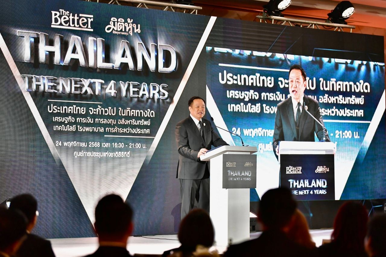 ขณะที่เสถียรภาพทางการเมืองมีส่วนสำคัญทางเศรษฐกิจ ปีหน้ามีเลือกตั้งแน่นอนยิ่งกว่าแน่นอน เพราะคนเสนอยุบสภายืนอยู่ตรงนี้ และมันก็ต้องยุบ เพราะเราให้สัญญากับ MOA กับพรรคประชาชนว่าเราจะให้การยุบสภาไม่เกินวันที่ 31 มกราคม 2569 นี้ ถ้ารถคันนี้ไปไม่ได้ เราก็คืนอำนาจให้กับพี่น้องประชาชน ให้เขาตัดสินใจว่าจะให้ประเทศไทยเดินหน้าไปอย่างไร
