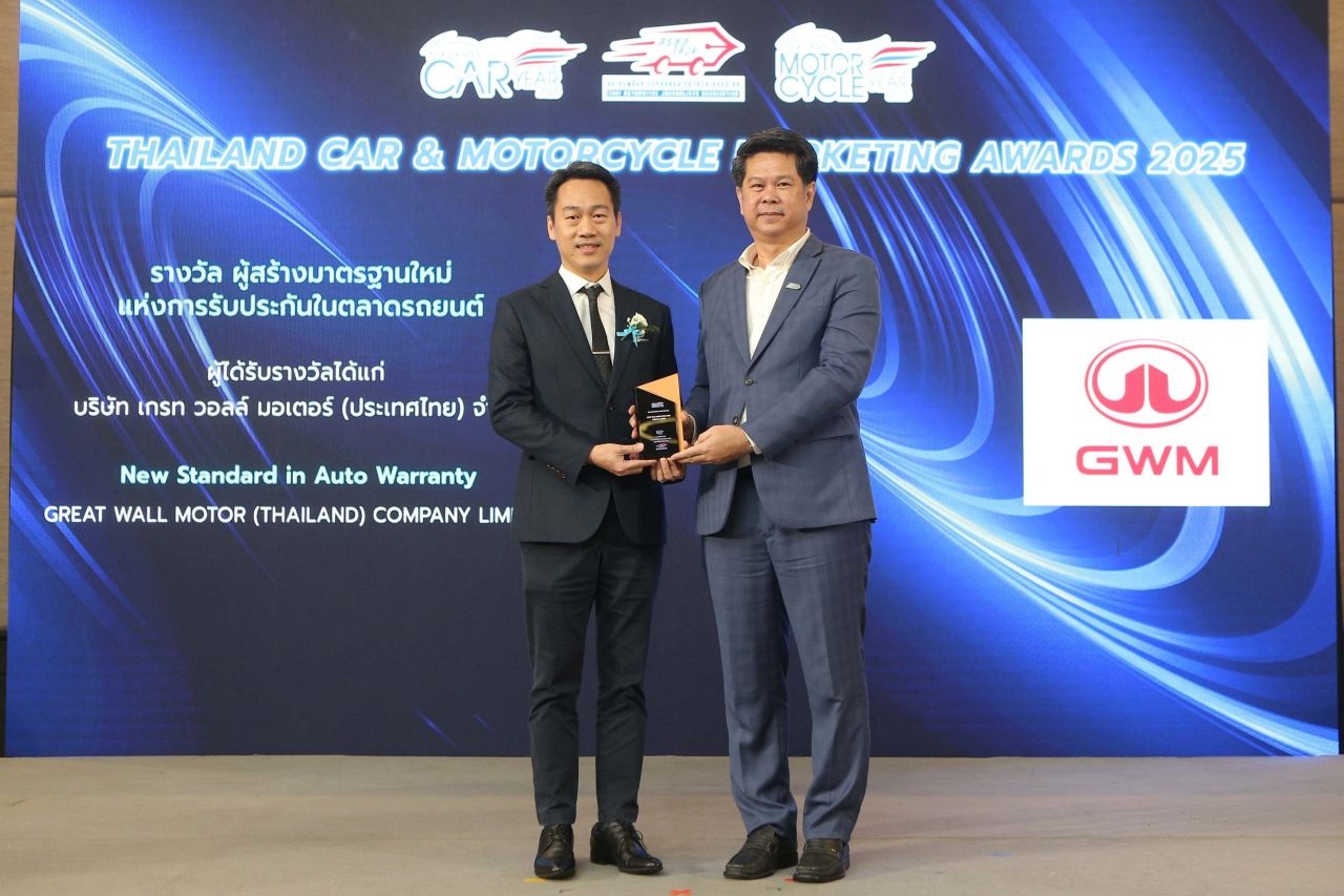 โดยมี คุณธีร์ธวัฒน์ โกศลานันทกุล ผู้อำนวยการฝ่ายบริการหลังการขาย GWM (Thailand) เป็นผู้แทนรับรางวัลจาก คุณสุรศักดิ์ จรินทร์ทอง นายกสมาคมฯ สรยท. สะท้อนถึงความโดดเด่นและคุณภาพของการรับประกันเครื่องยนต์ดีเซล 2.4T เจนเนอเรชันใหม่ในตระกูล GWM TANK ด้วยระยะทางสูงสุด 1,000,000 กิโลเมตร (หรือ 8 ปี)