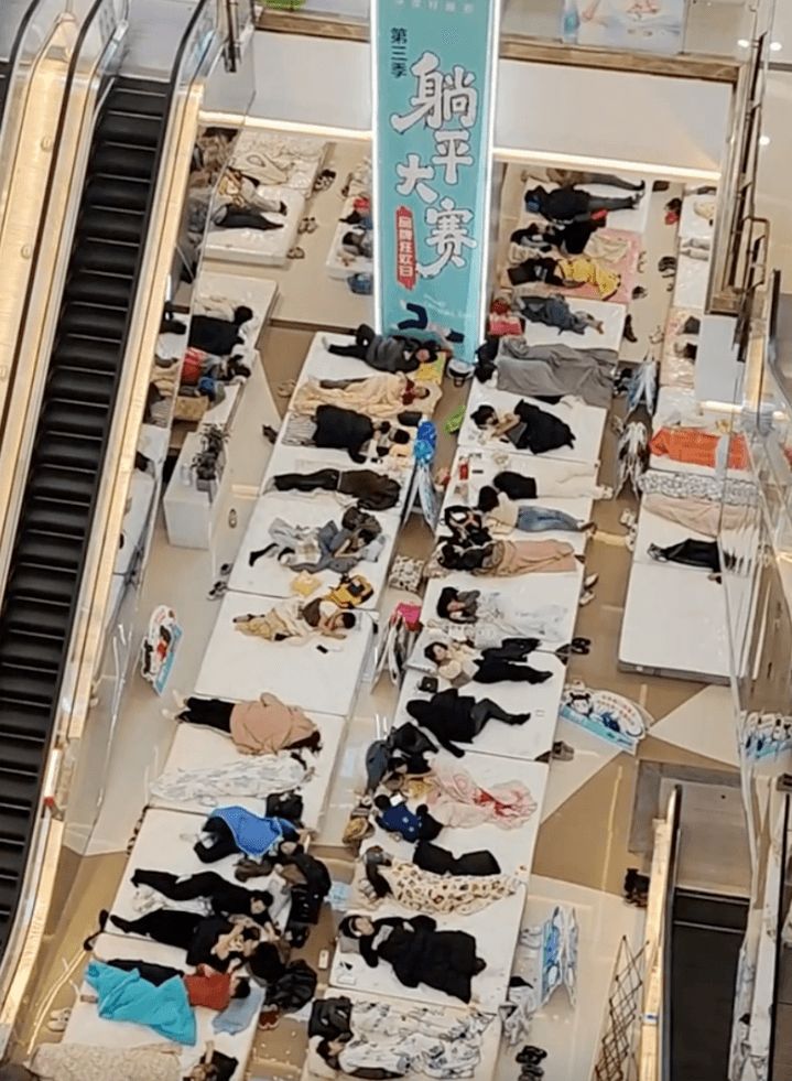 โลกโซเชียลต่างแชร์คลิป การจัดการแข่งขันสุดแปลกประหลาดในห้างสรรพสินค้า ในเขตมองโกเลียในของจีน โดยพื้นห้างเต็มไปด้วยฟูกที่นอน และผู้เข้าแข่งขันที่นอนเรียงราย เพื่อร่วมแข่งขันการนอนขี้เกียจ โดยมีผู้เข้าร่วมแข่งขันกว่า 240 คน