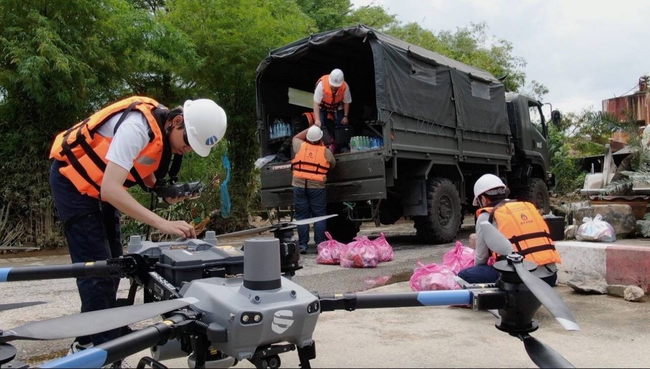 โดยเล็งเห็นถึงความเดือดร้อนของประชาชนในพื้นที่ภาคใต้ โดยเฉพาะในพื้นที่สีแดง หรือพื้นที่เฝ้าระวังที่รถยนต์และเรือท้องแบนเริ่มพบข้อจำกัด จึงนำเทคโนโลยีโดรนเพื่อการขนส่ง (Delivery Drone) และ โดรนเพื่อการสำรวจและเฝ้าระวัง (Surveillance Drone) เข้ามาเสริมทัพ สนับสนุนภารกิจส่งมอบความช่วยเหลือผ่านศูนย์บรรเทาสาธารณภัย มณฑลทหารบกที่ 42 ค่ายเสนาณรงค์ จังหวัดสงขลา ช่วยลำเลียงถุงยังชีพและเวชภัณฑ์ส่งตรง ถึงมือผู้ประสบภัยในจุดที่เข้าถึงได้ยาก เพื่อแก้ปัญหาความล่าช้าและลดความเสี่ยงให้ทีมกู้ภัยหน้างาน