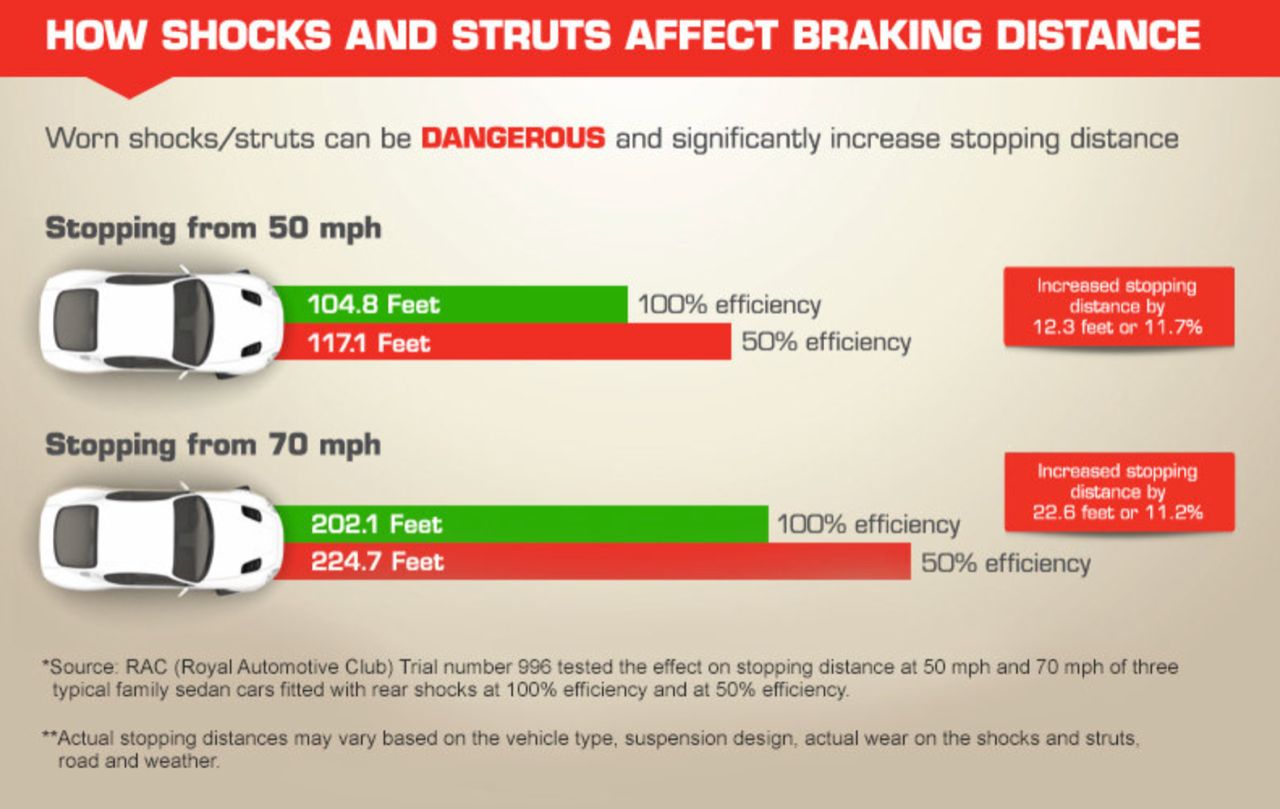 ระยะทางขณะเบรก: ระยะทางตั้งแต่เหยียบเบรกจนรถหยุดสนิท ซึ่งได้รับผลกระทบจากความเร็ว (เพิ่มขึ้นแบบทวีคูณ) และสภาพถนน (แรงยึดเกาะน้อยลง = ระยะทางไกลขึ้น)