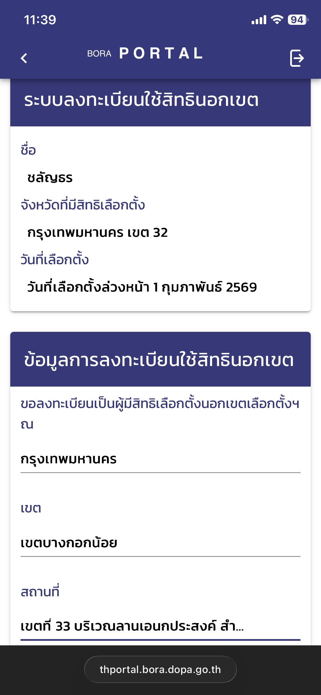 ทั้งนี้ ในเว็บไซต์และแอปพลิเคชันยังได้ขึ้นข้อความแจ้งเตือนด้วยว่า “กรณีมีประกาศให้มีการออกเสียงประชามติพร้อมกับการเลือกตั้ง สส. ท่านจะต้องลงทะเบียนขอใช้สิทธิออกเสียงประชามตินอกเขตอีกครั้ง”