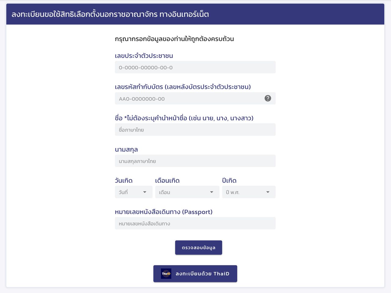 2. กรอกข้อมูลให้ครบถ้วนเพื่อกดตรวจสอบข้อมูล