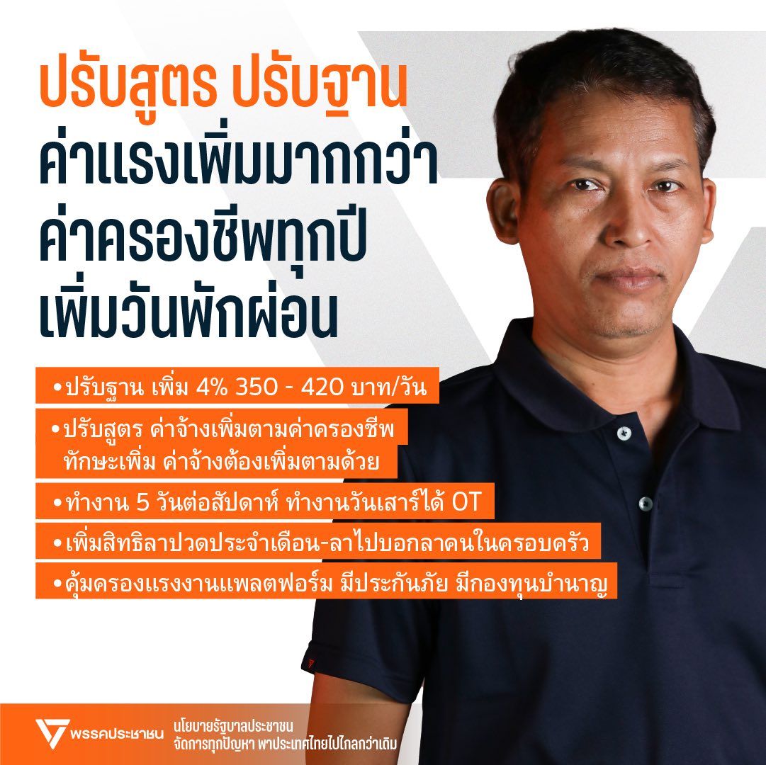 4. ปรับสูตร ปรับฐาน ค่าแรงเพิ่มมากกว่าค่าครองชีพทุกปี เพิ่มวันพักผ่อน พรรคประชาชนชูข้อเสนอเพื่อยกระดับสวัสดิภาพแรงงานให้ครอบคลุมแรงงานทุกกลุ่ม เพื่อสร้างความเป็นธรรม สร้างความมั่นคงในชีวิต เพื่อให้แรงงานมีคุณภาพชีวิตที่ดี ไม่ใช่เพียงแต่พอให้ประทังชีวิตอยู่ได้ไปวัน ๆ โดยมีแนวนโยบายดังต่อไปนี้