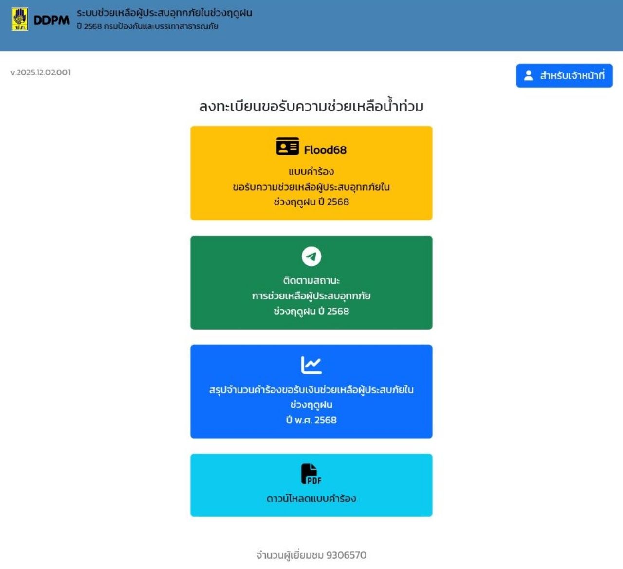 1. ลงทะเบียนผ่านเว็บไซต์ https://flood68.disaster.go.th