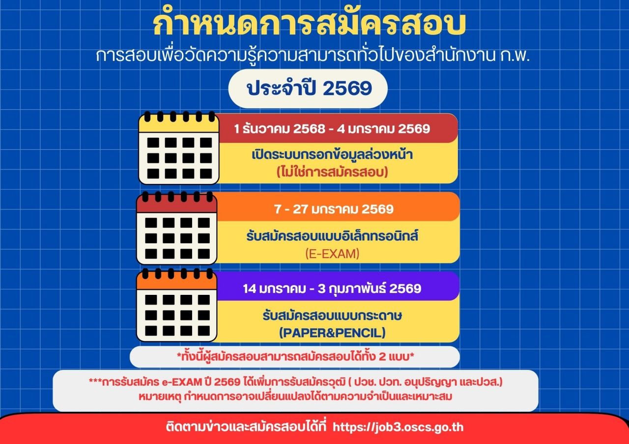 กำหนดการ "สอบ ก.พ." ปี 2569