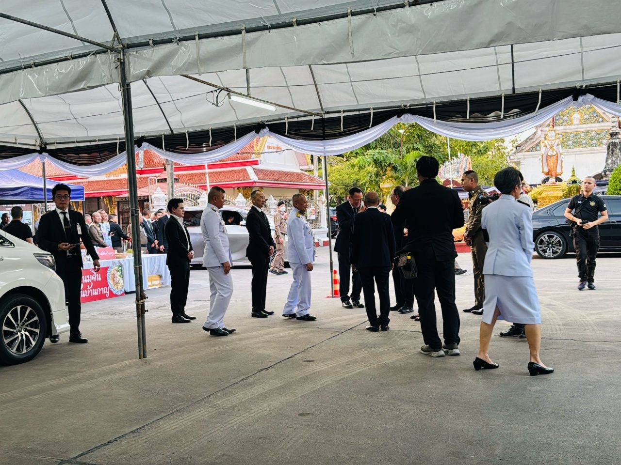 โดยเมื่อเวลา 17.30 น. นายอนุทิน ชาญวีรกูล นายกรัฐมนตรี ได้เดินทางมาร่วมงาน โดยมี พล.อ.อ.สถิตย์พงษ์ สุขวิมล ราชเลขา พล.ต.อ.ต่อศักดิ์ สุขวิมล อดีต ผบ.ตร. เข้าไปภายในศาลา ร่วมสวดพระอภิธรรม