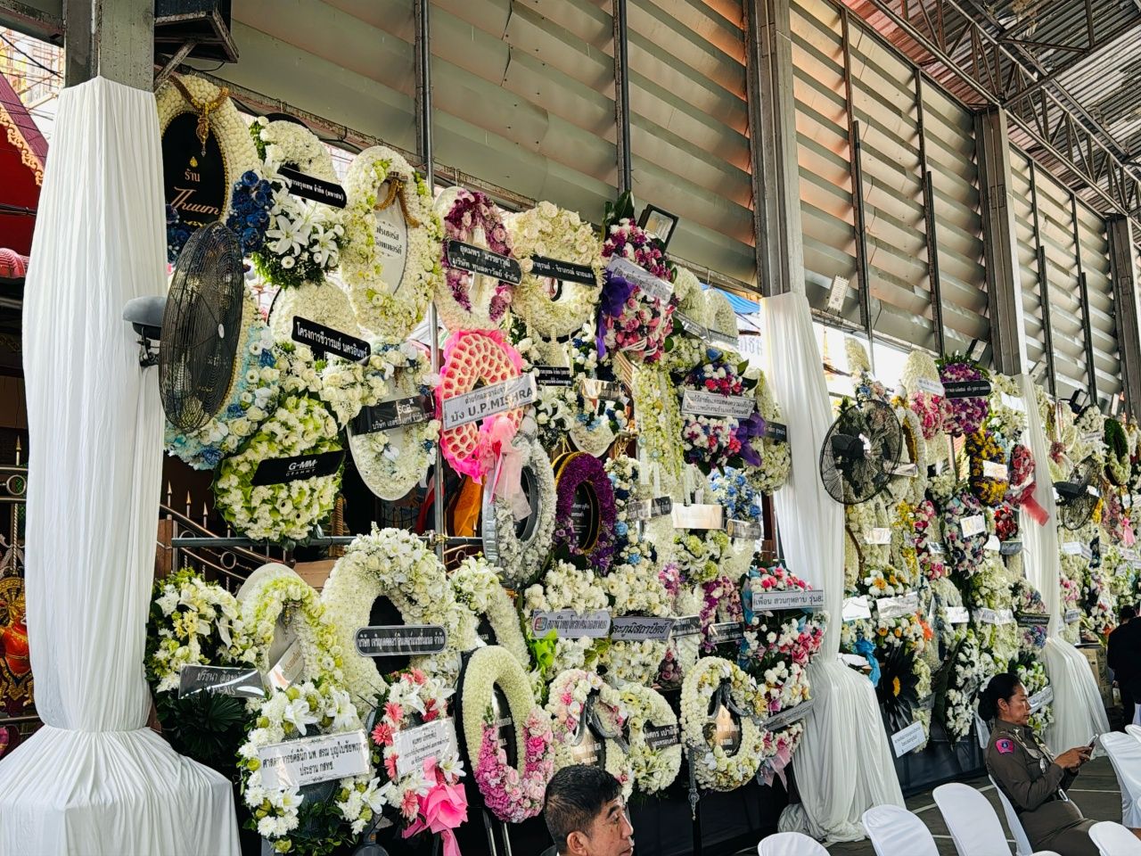 และยังมีพวงหรีดจากบุคคลสำคัญส่งมาร่วมแสดงความเสียใจ อาทิ นายโพธิพงษ์ ล่ำซำ พล.อ.ประวิตร วงษ์สุวรรณ หัวหน้าพรรคพลังประชารัฐ คุณหญิง พจมาน ดามาพงศ์ น.ส.แพทองธาร ชินวัตร อดีตนายกรัฐมนตรี ฯลฯ
