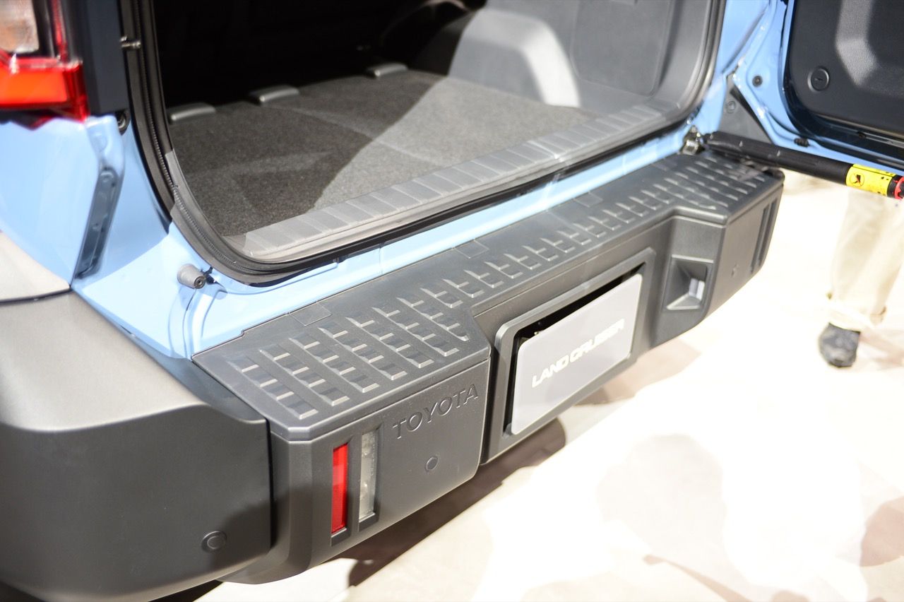 การกลับมาของ FJ Cruiser รถออฟโรดขนาดเล็กที่เน้นไลฟ์สไตล์ เป็นส่วนหนึ่งของตระกูล Land Cruiser 250 แต่สั้นกว่า FJ ใหม่นี้ยังคงมาพร้อมความน่าเชื่อถือและจิตวิญญาณแห่งการผจญภัย เพียงแต่มาในมิติตัวถังที่กระชับและคล่องตัวมากกว่า รูปลักษณ์ของ Land Cruiser FJ เป็นการเชื่อมโยงเอกลักษณ์ของ Land Cruiser มาตีความใหม่ให้เข้ากับยุคสมัย รูปทรงสี่เหลี่ยม ไฟหน้าทรงกลม โอเวอร์แฮงค์สั้น สะท้อนถึง FJ Cruiser ในอดีต ตัวถังทรงสี่เหลี่ยมและขอบมุมเฉียงสร้างรูปลักษณ์ที่แข็งแกร่ง กันชนของ FJ เป็นแบบแยกส่วนและถอดออกได้ ออกแบบให้เจ้าของรถเปลี่ยนเฉพาะส่วนที่เสียหาย เพื่อประโยชน์ใช้สอยและการปรับแต่ง บังโคลนกว้างและรูปทรงตั้งตรงให้ความรู้สึกมั่นคง แผง MOLLE จาก Lunar Cruiser สามารถติดอุปกรณ์ต่างๆ สำหรับการตั้งแคมป์หรือการเดินทางแบบออฟโรด