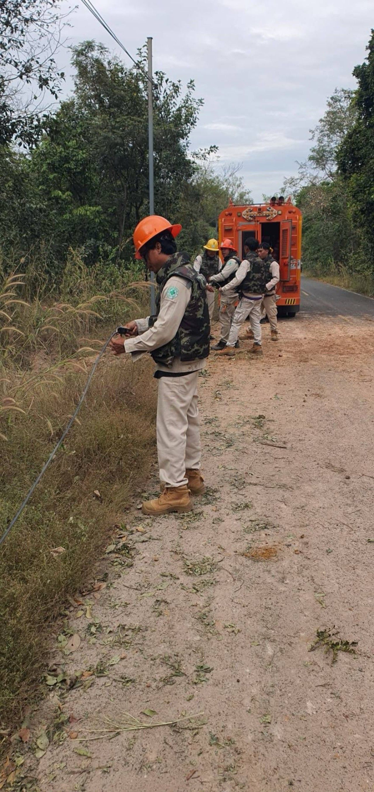 โลกโซเชียล ขอบคุณแนวหลัง เจ้าหน้าที่การไฟฟ้าส่วนภูมิภาค สวมเสื้อเกราะซ่อมสายไฟแนวชายแดนไทยกัมพูชา หลังถูกถล่มได้รับความเสียหาย