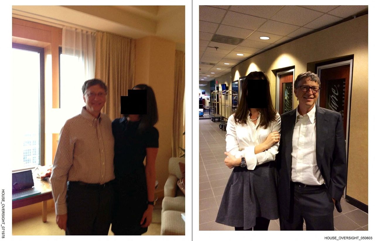 ภาพดังกล่าวรวมถึงภาพของบุคคลที่มีชื่อเสียงอย่าง บิล เกตส์ ผู้ร่วมก่อตั้งไมโครซอฟท์ ขณะยืนอยู่ร่วมกับผู้หญิงที่ใบหน้าถูกพรางไว้จำนวน 2 ภาพ โดยยังไม่แน่ชัดว่าผู้หญิงในภาพเป็นใคร หรือเป็นคนเดียวกันหรือไม่ แต่ก่อนหน้านี้เกตส์เคยกล่าวว่าเขาได้ทำ “ความผิดพลาดครั้งใหญ่” ที่ไปใช้เวลาร่วมกับเอปสตีน