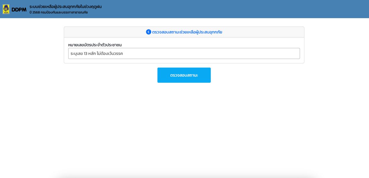 - คลิกแถบสีเขียว "ติดตามสถานะการช่วยเหลือผู้ประสบอุทกภัย ช่วงฤดูฝน 2568"