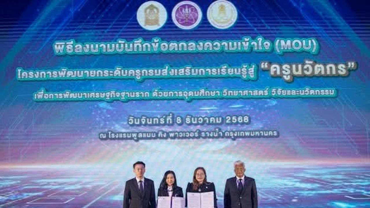 เมื่อวันที่ 9 ธ.ค. ผู้สื่อข่าวรายงานว่า เมื่อเร็วๆ นี้ ณ ห้องอินฟินิตี้ บอลรูม โรงแรมพูลแมน คิง เพาเวอร์ กรุงเทพฯ กระทรวงการอุดมศึกษา วิทยาศาสตร์ วิจัยและนวัตกรรม (อว.) ร่วมกับกระทรวงศึกษาธิการ โดยกรมส่งเสริมการเรียนรู้ (สกร.) จัดพิธีลงนามบันทึกข้อตกลงความเข้าใจ (MOU) เพื่อยกระดับศักยภาพครูกรมส่งเสริมการเรียนรู้ทั่วประเทศสู่การเป็นครูนวัตกร โดยมีเป้าหมาย เพื่อขับเคลื่อนองค์ความรู้ด้านอุดมศึกษา วิทยาศาสตร์ วิจัยและนวัตกรรม (อววน.) ไปสู่การสร้างประโยชน์ในเชิงพื้นที่อย่างเป็นระบบ พร้อมวางรากฐานการเรียนรู้ตลอดชีวิตแก่ประชาชนทุกกลุ่มวัย เพื่อรองรับการเปลี่ยนแปลงของโลกยุคใหม่และสนับสนุนการเติบโตของเศรษฐกิจฐานรากอย่างยั่งยืน