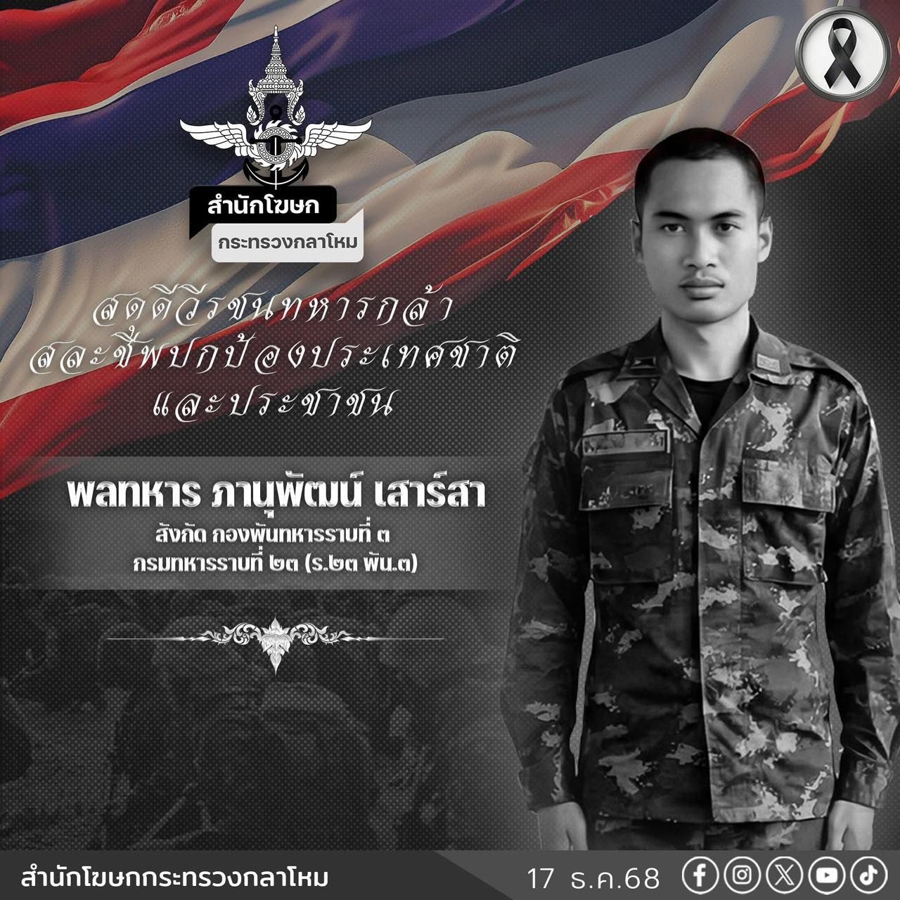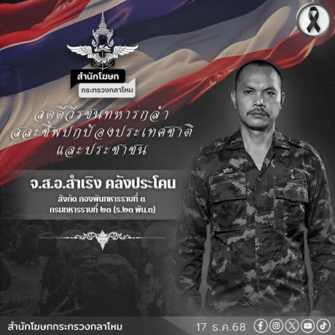 ขอไว้อาลัยแด่ทหารผู้กล้าหาญทุกท่านที่สละชีพ สูญเสียอวัยวะ เพื่อปกป้องผืนแผ่นดินไทย ขอสดุดีในความเสียสละอันยิ่งใหญ่ของทุกท่านทั้งสามเหล่าทัพ รวมถึงกำลังตำรวจ ตชด. ทหารพราน ชุดป้องกันหมู่บ้าน แพทย์และพยาบาล หน่วยกู้ชีพฉุกเฉิน และขอแสดงความเสียใจต่อครอบครัวผู้สูญเสีย พวกท่านคือวีรบุรุษของชาติไทยตลอดไป.