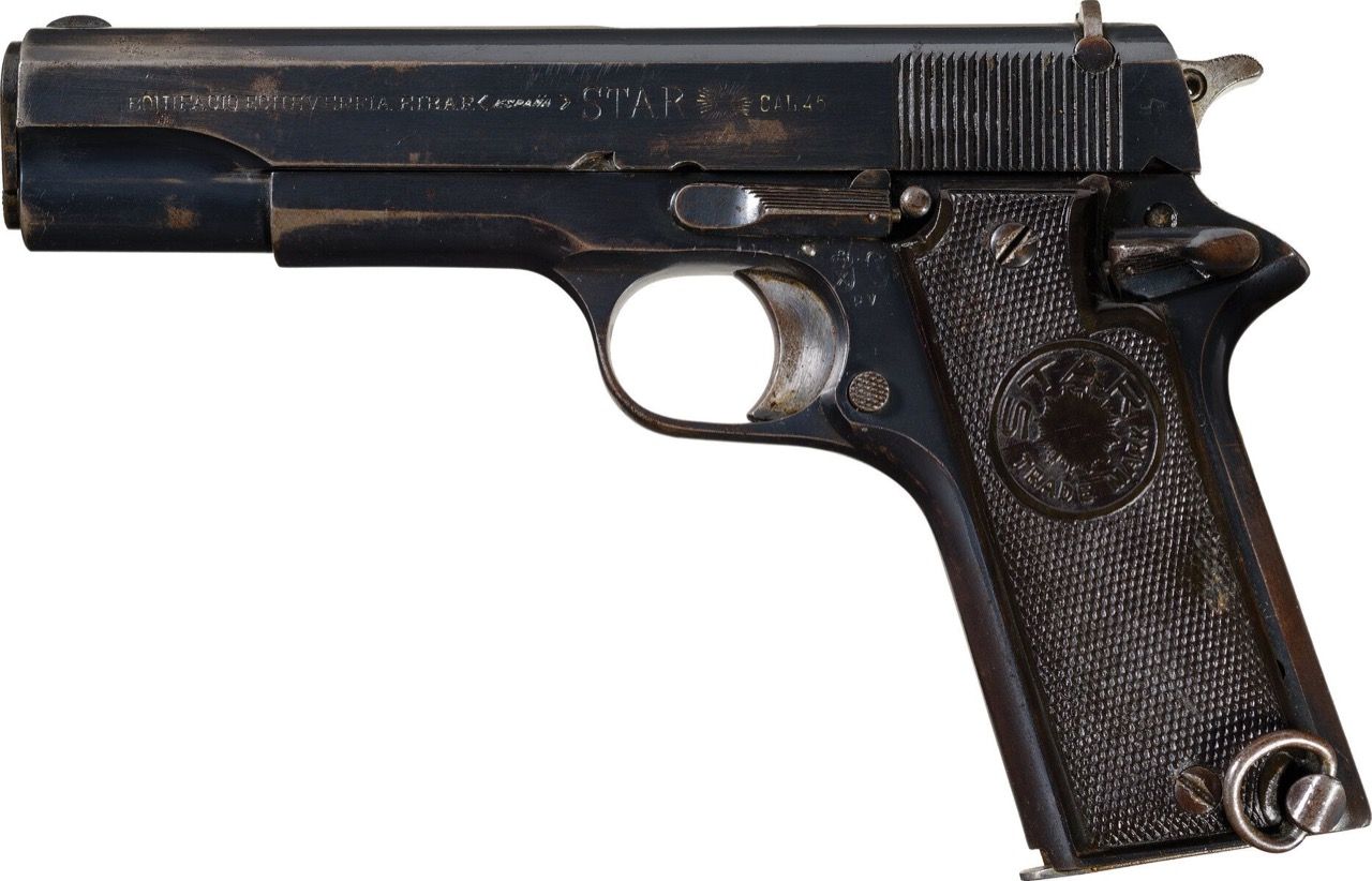 ปืนพกกึ่งอัตโนมัติ Ordnance Department Star Bonifacio Echeverria model M mod ขนาด .45 นิ้ว เป็นปืนพกที่ผลิตโดยบริษัท Star Firearms (Star Bonifacio Echeverria S.A.) จากสเปน รุ่น M (หรือ Model M) เป็นรุ่นปืนพกขนาด .45 ACP (11mm) ที่มีลักษณะคล้ายคลึงกับ M 1911 แต่มีดีไซน์เป็นเอกลักษณ์ มีชื่อเสียงด้านความทนทานและแม่นยำ มักถูกใช้โดยหน่วยงานตำรวจและทหารในหลายประเทศ และเป็นปืนที่นักสะสมให้ความสนใจ.