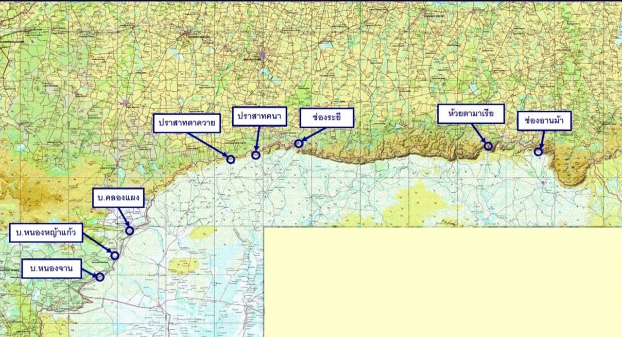 ส่วนพื้นที่กวาดล้าง ที่ถูกรุกล้ำ ช่องระยี ที่อยู่ทางทิศตะวันออกของช่องจอม อำเภอกาบเชิง จังหวัดสุรินทร์ อยู่ระหว่างปฏิบัติการ