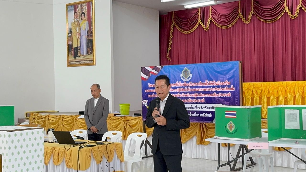 ประธาน กกต. ตรวจเยี่ยมการอบรม กปน.ประจำหน่วยเลือกตั้ง จ.ฉะเชิงเทรา กำชับเข้มพื้นที่แข่งขันสูง ป้องปรามซื้อเสียงให้เป็นศูนย์