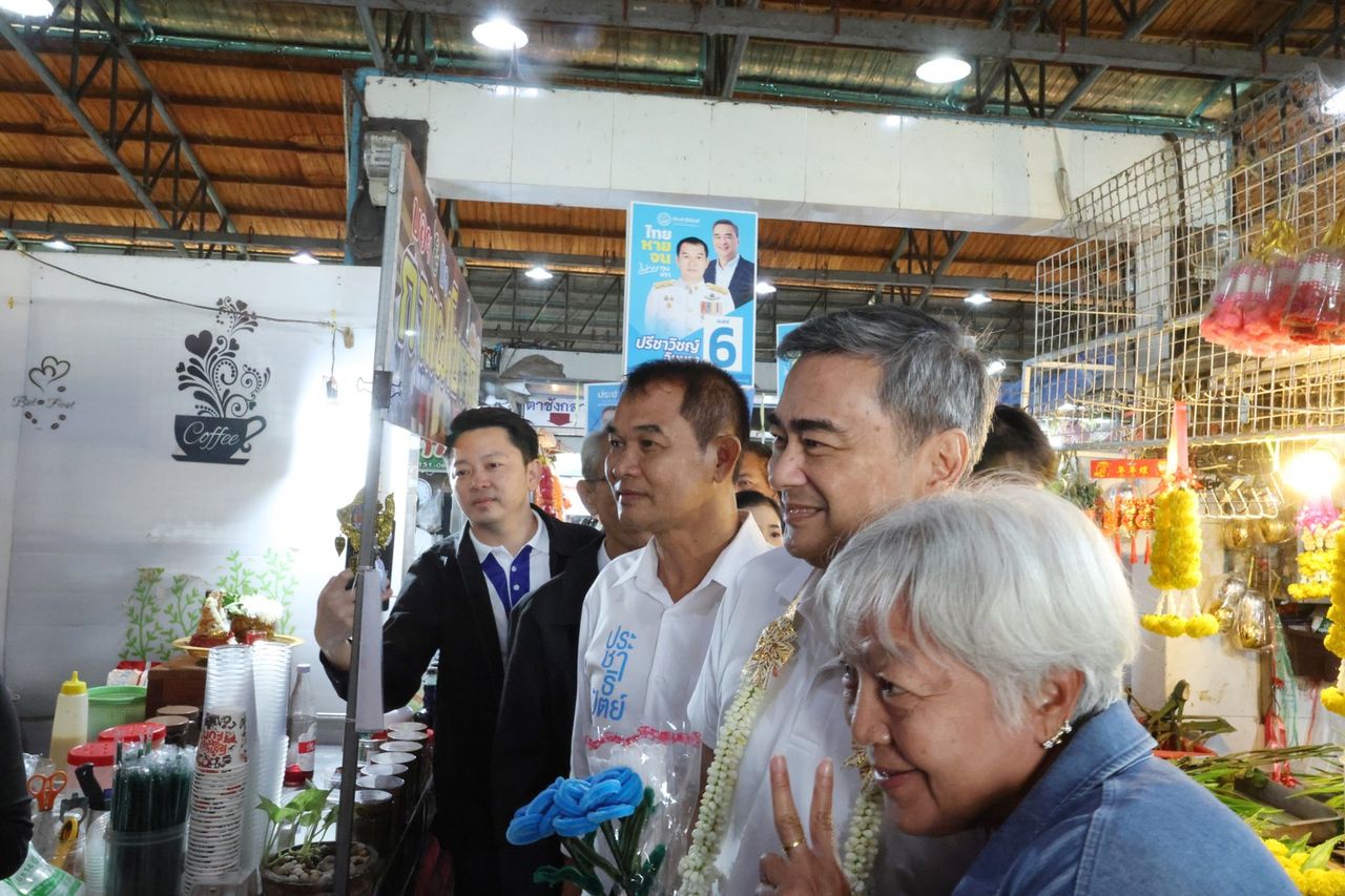 วันที่ 23 มกราคม 2569 ที่จังหวัดตราด นายอภิสิทธิ์ เวชชาชีวะ หัวหน้าพรรคประชาธิปัตย์และแคนดิเดตนายกรัฐมนตรี พร้อมด้วยแกนนำพรรคอย่าง นายสาทิตย์ วงศ์หนองเตย และนายสาธิต ปิตุเตชะ รองหัวหน้าพรรค นายธีระ สลักเพชร อดีต สส.ตราด ประชาธิปัตย์ 5 สมัย รวมพลังลงพื้นที่พบปะพี่น้องประชาชน ที่ตลาดสดเทศบาลแสนตุ้ง อำเภอเขาสมิง จังหวัดตราด