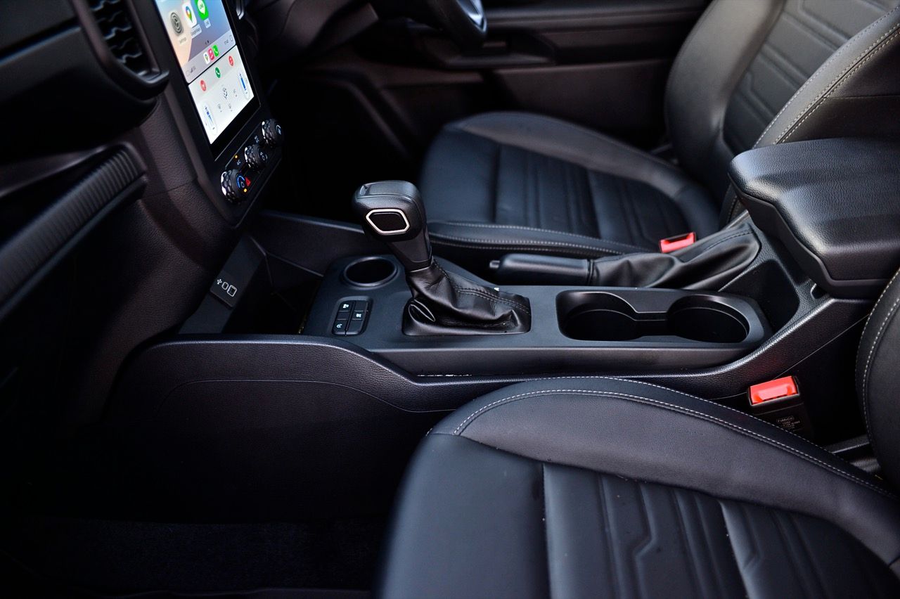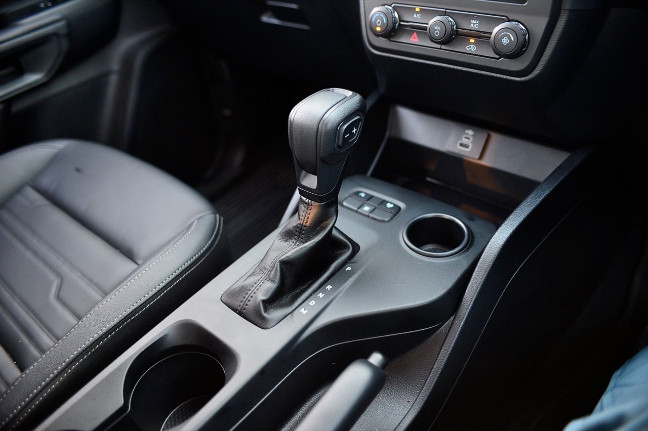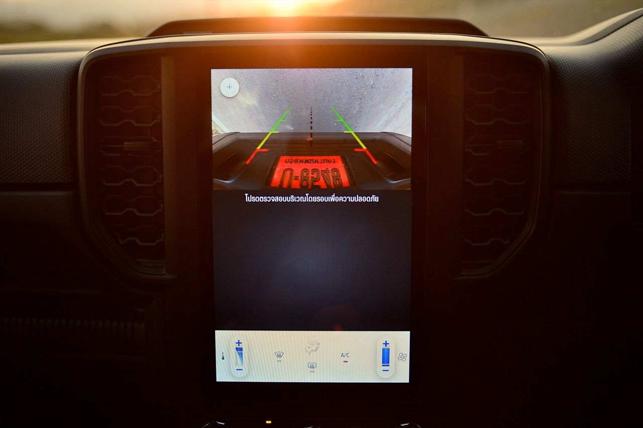 พูดถึงเกียร์ใน Manual Mode นั้น Ford ก็ยังทำเหมือนเดิม คือ ไม่มี Paddle Shift แต่เอาปุ่ม +/- ไว้ที่หัวเกียร์ ซึ่งการกด +/- ในเกียร์ D คือการสั่งว่ารถจะใช้เกียร์สูงสุดที่เกียร์ไหน ถ้าไปกด +/- ใน Mode M ก็จะเป็นการชิฟต์เกียร์ต่ำ/สูง ซึ่งเวลาขับจากทางราบมาเจอเขา ผมพบว่าใช้ฟังก์ชั่นจำกัดเกียร์สูงสุดง่ายกว่าการเล่นเกียร์เอง เพราะคุณต้องละมือจากพวงมาลัยมากดปุ่มที่หัวเกียร์ ไม่สะดวกเท่าไร เมื่อถาม Ford ก็ได้คำตอบว่า เขาทำวิจัยมาแล้วว่า ลูกค้าของรถรุ่นที่ไม่ใช่ Raptor มักจะใส่เกียร์ D แล้วปล่อยไว้อย่างนั้น ไม่เล่นเกียร์กันเท่าไร