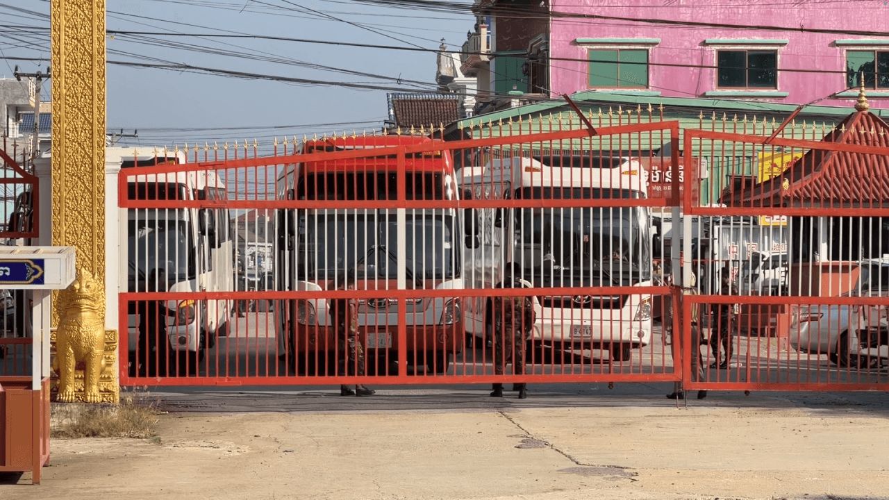 ทั้งนี้พบว่า เวลา 08.42 ประตูฝั่งกัมพูชา (ด่านบ้านโดง) จังหวัดพระตะบอง ตรงข้ามกับด่านถาวรบ้านแหลม สังเกตเห็นรถบัสเข้ามาจอดจำนวน 4 คัน พร้อมเจ้าหน้าที่เดินสังเกตการณ์อยู่จำนวนมากเช่นเดียวกัน