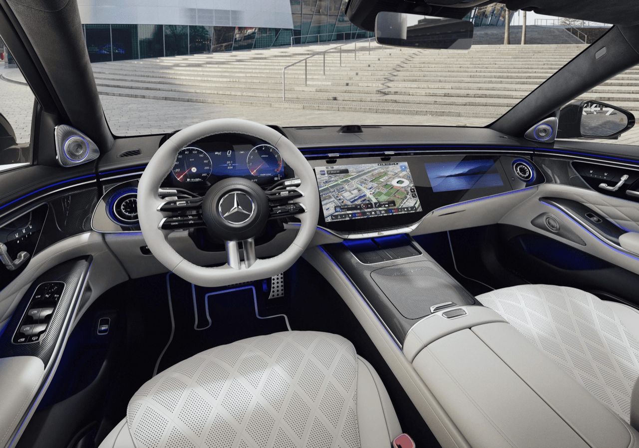 ห้องโดยสารของ S-Class รุ่นปรับโฉม 2027 มีการเปลี่ยนแปลงเล็กๆน้อยๆ ปรับปรุงอุปกรณ์บางตำแหน่งเพื่อเพิ่มความละเอียดอ่อนแต่เห็นได้ชัดเจน หน้าจอ Hyperscreen จากเดิมที่เป็นแผ่นกระจกขนาดใหญ่เชื่อมต่อกัน มาถึงโมเดลปรับโฉม S-Class Facelift 2026 มีแผงหน้าปัดและหน้าจอสัมผัสตรงกลางที่ถูกแยกออกจากกัน Mercedes-Benz เรียกชุดหน้าจอใหม่นี้ว่า "Superscreen" ประกอบด้วยแผงหน้าปัดดิจิทัล ขนาด 12.3 นิ้ว หน้าจอสัมผัสตรงกลางขนาด 14.3 นิ้ว และจอแสดงผลสำหรับผู้โดยสารขนาด 12.3 นิ้ว ใช้ระบบปฏิบัติการ MBUX เวอร์ชันใหม่ล่าสุด เพิ่มประสิทธิภาพการใช้งานด้วย AI และการผสานรวมของ Google Maps MB-OS แบบใหม่ ยังขยายไปถึงเบาะหลัง ด้วยจอแสดงผลขนาด 13.1 นิ้ว สองจอ ติดตั้งอยู่ที่พนักพิงเบาะหน้า สำหรับผู้โดยสารตอนหลัง นั่นหมายถึงเจ้าของรถ หรือเจ้านาย เพราะเจ้าของ S-Class ส่วนใหญ่ ไม่ขับรถเองแล้ว จอหลังยังมาพร้อมกับรีโมท MBUX ที่ถอดออกได้สองตัว เป็นครั้งแรกที่ Mercedes-Benz นำเสนอแอปพลิเคชันใหม่ล่าสุด เช่น Disney+ และ YouTube ผ่านระบบ MBUX