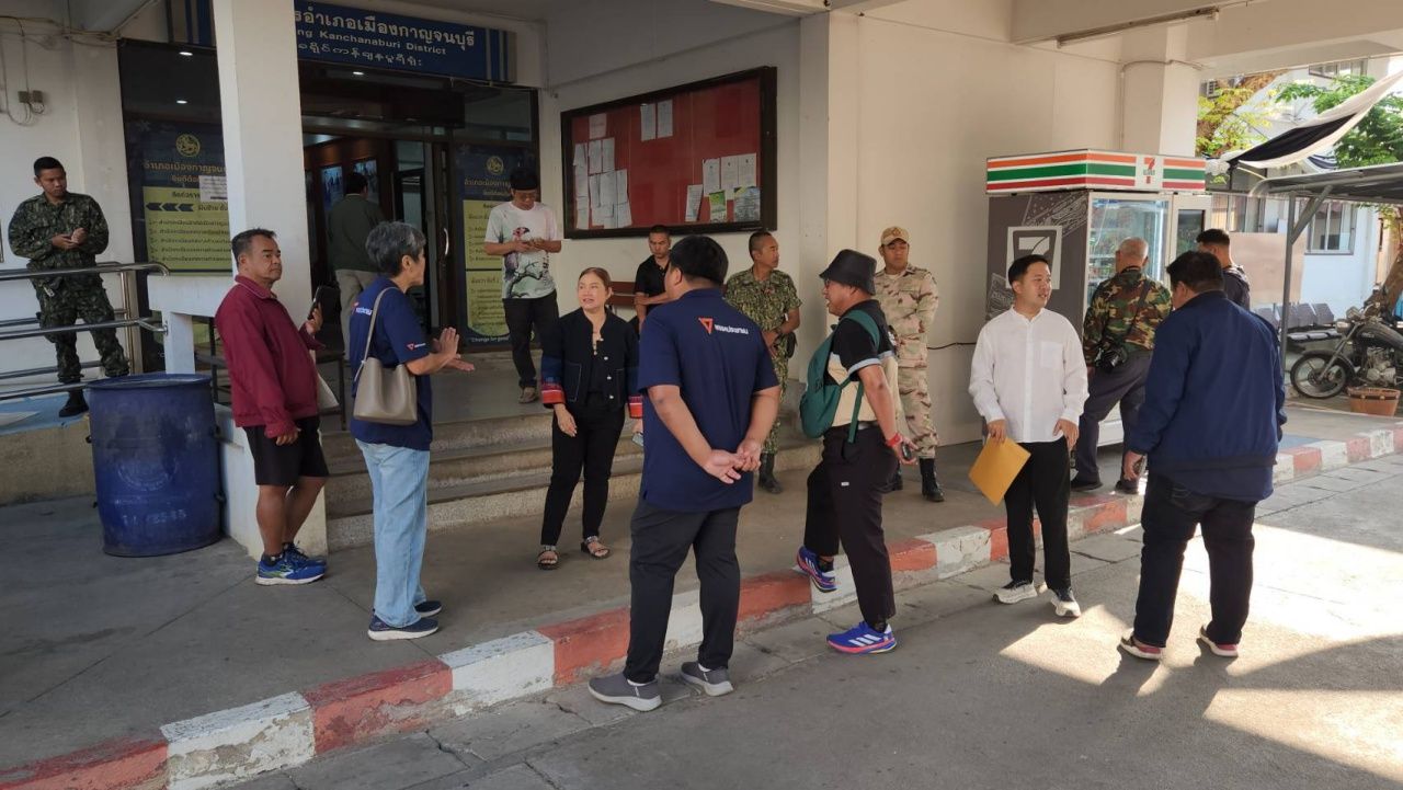 ดังนั้นสื่อมวลชนในพื้นที่จังหวัดกาญจนบุรี จึงเดินทางไปที่ที่ว่าการอำเภอเมืองกาญจนบุรี เมื่อไปถึงพบ นายเจษฎา เอี่ยมปุ่น รองเลขาธิการพรรคประชาชน และนายภูวนาท รัศมีฤกษ์เศรษฐ์ ผู้สมัคร สส.กาญจนบุรี แบบแบ่งเขตเลือกตั้ง เขตเลือกตั้งที่ 1 พรรคประชาชน เบอร์ 6 รวมถึงกลุ่มผู้ให้การสนับสนุนพรรคประชาชนจำนวนหนึ่ง นั่งรอเวลาให้สถานที่ราชการเปิดทำงานอยู่ที่สวนหย่อมด้านหน้าที่ว่าการอำเภอเมืองกาญจนบุรี