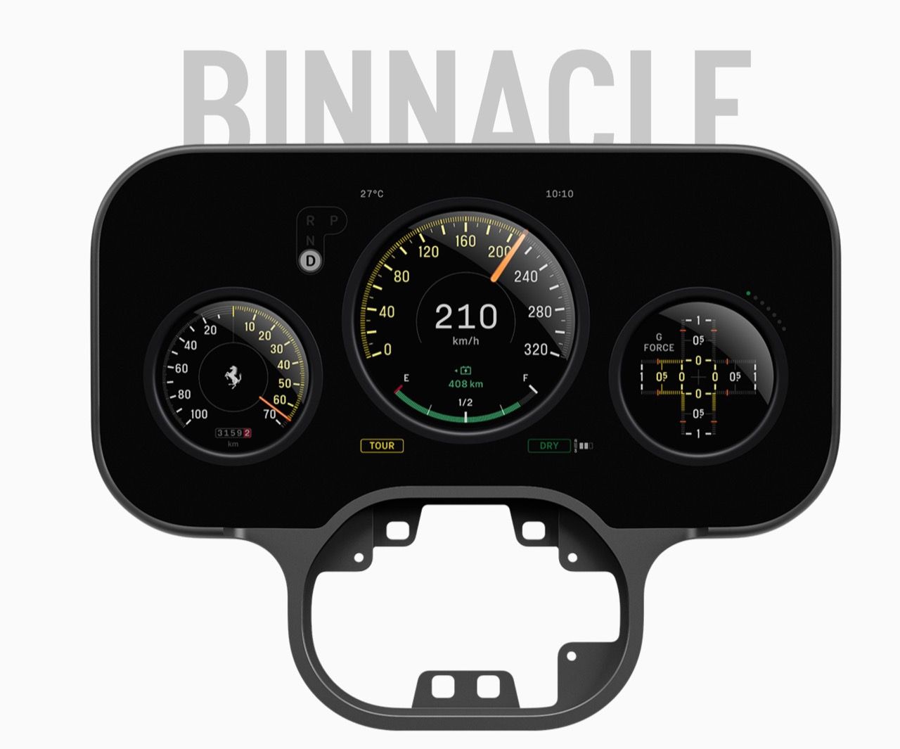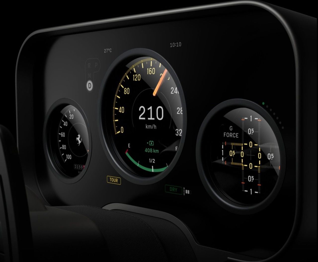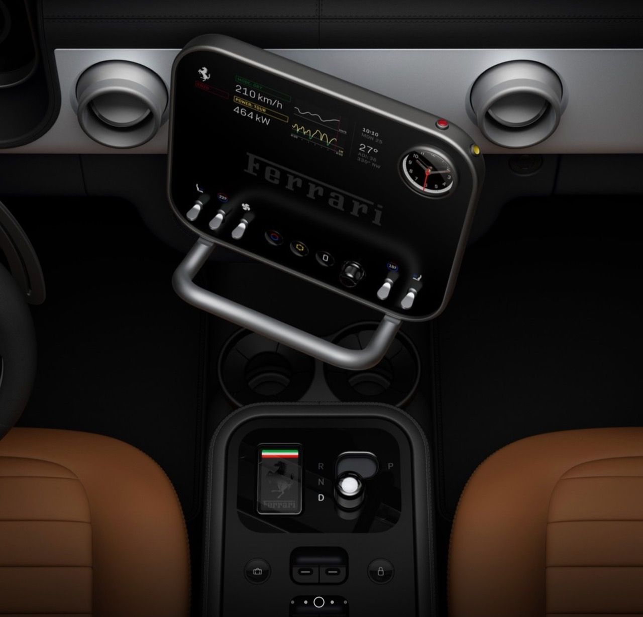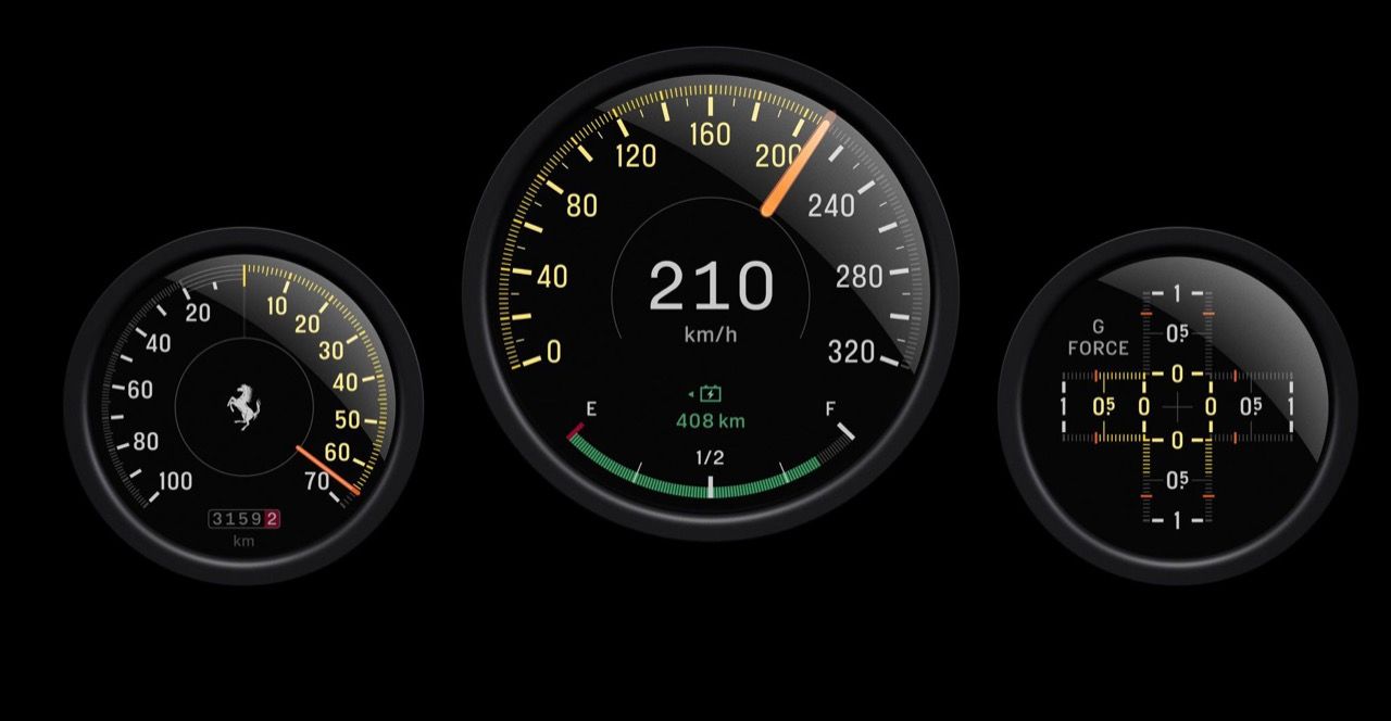 กราฟิกบนหน้าปัดได้รับแรงบันดาลใจจากมาตรวัด Veglia และ Jaeger ในรถ Ferrari Classic เข็มนาฬิกา....เป็นชิ้นส่วนจริงๆ ทำจากอะลูมิเนียมชุบอะโนไดซ์ มีไฟ LED 15 ดวง ส่องสว่างอยู่ด้านหลัง ช่วยลดภาระทางความคิดของคนขับ แน่นอนว่าทั้งหมดดูเท่ มีปุ่มควบคุมเพิ่มเติมในแผงด้านบนใกล้กับกระจกมองหลัง รวมถึงปุ่มควบคุมการออกตัว (launch control) อีกหนึ่งสัมผัสที่ออกแบบมาจากเทคโนโลยีการบิน