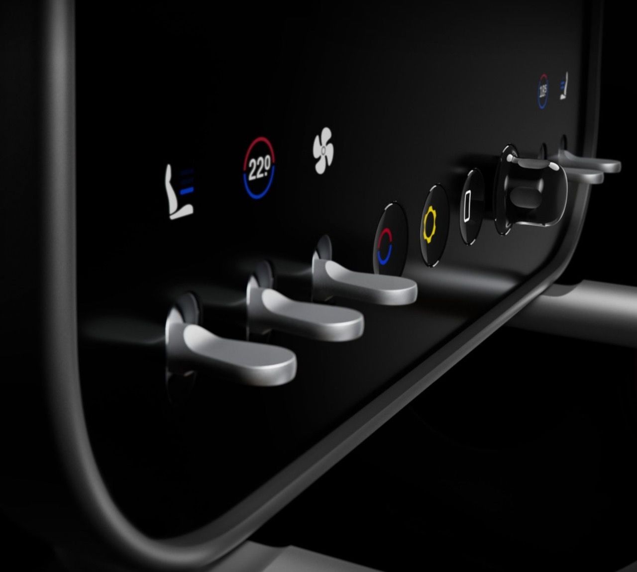 หน้าจอควบคุมส่วนกลาง ขนาด 10.12 นิ้ว ติดตั้งบนข้อต่อแบบลูกบอลและเบ้า ทำให้สามารถหมุนได้รอบคนขับหรือผู้โดยสาร การทำงานนั้นราบรื่น มีที่วางฝ่ามือเพื่อป้องกันไม่ให้ผู้ใช้งานเอานิ้วไปจิ้มหน้าจอ สวิตช์ควบคุมระบบปรับอากาศแบบโบราณ ทีมงานออกแบบพยายามเชื่อมโยงอุปกรณ์ภายในของรถคลาสสิก ไม่ว่าจะเป็น Bentley Continental S3, Bugatti Type 59 และ Ferrari 250 GT Europa ความชื่นชอบในสวิตช์แบบเก่า ไม่ใช่แค่ความหลงใหลในรูปแบบคลาสสิก แต่ฟังก์ชันการใช้งานนั้นเหนือกว่ารถยนต์ยุคใหม่ที่เอาทุกอย่างไปยัดไว้ในจอโดยไม่คำนึงถึงความปลอดภัยในการใช้งาน