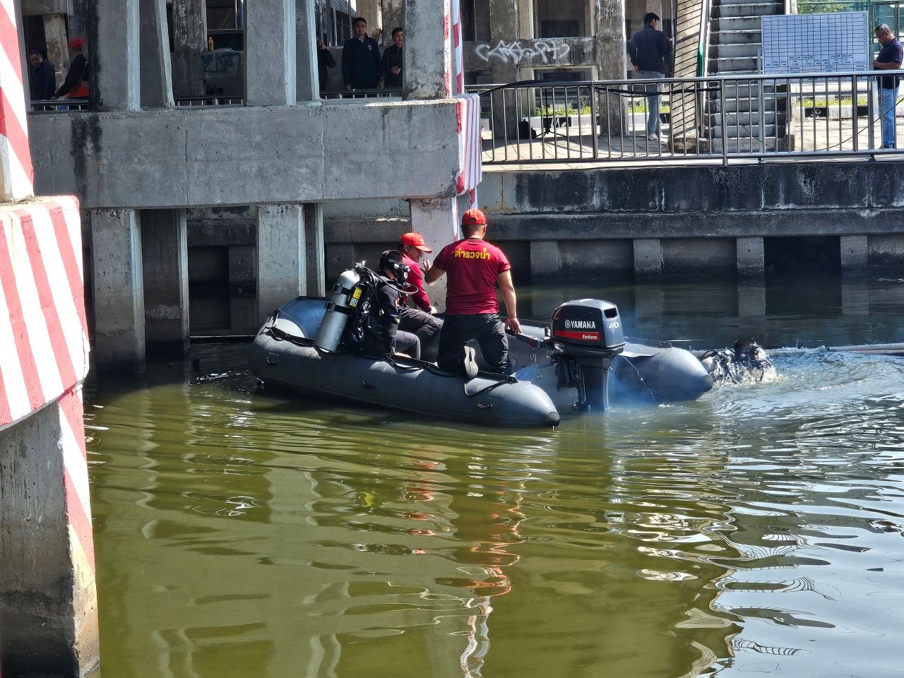 พล.ต.ต.เศรษฐสิริ ผบก.รน. กล่าวว่า รับการประสานจากตำรวจนครบาลให้นำกำลังมาสนับสนุนในการค้นหาพยานหลักฐาน เชื่อว่าน่าจะเป็นอาวุธปืนที่คนร้ายนำมาทิ้งในคลอง เบื้องต้นได้ส่งนักประดาน้ำลงงมหา ใช้เครื่องสแกนวัตถุโลหะใต้น้ำเพื่อช่วยในการค้นหาด้วย มั่นใจว่าถ้าคนร้ายนำปืนมาทิ้งในคลองบริเวณนี้จริง จะสามารถหาปืนของกลางพบอย่างแน่นอน