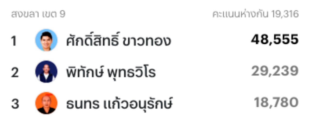 เขต 5 สงขลา นายวงศ์วชร ขาวทอง พรรคกล้าธรรม ได้ 50,210 คะแนน
