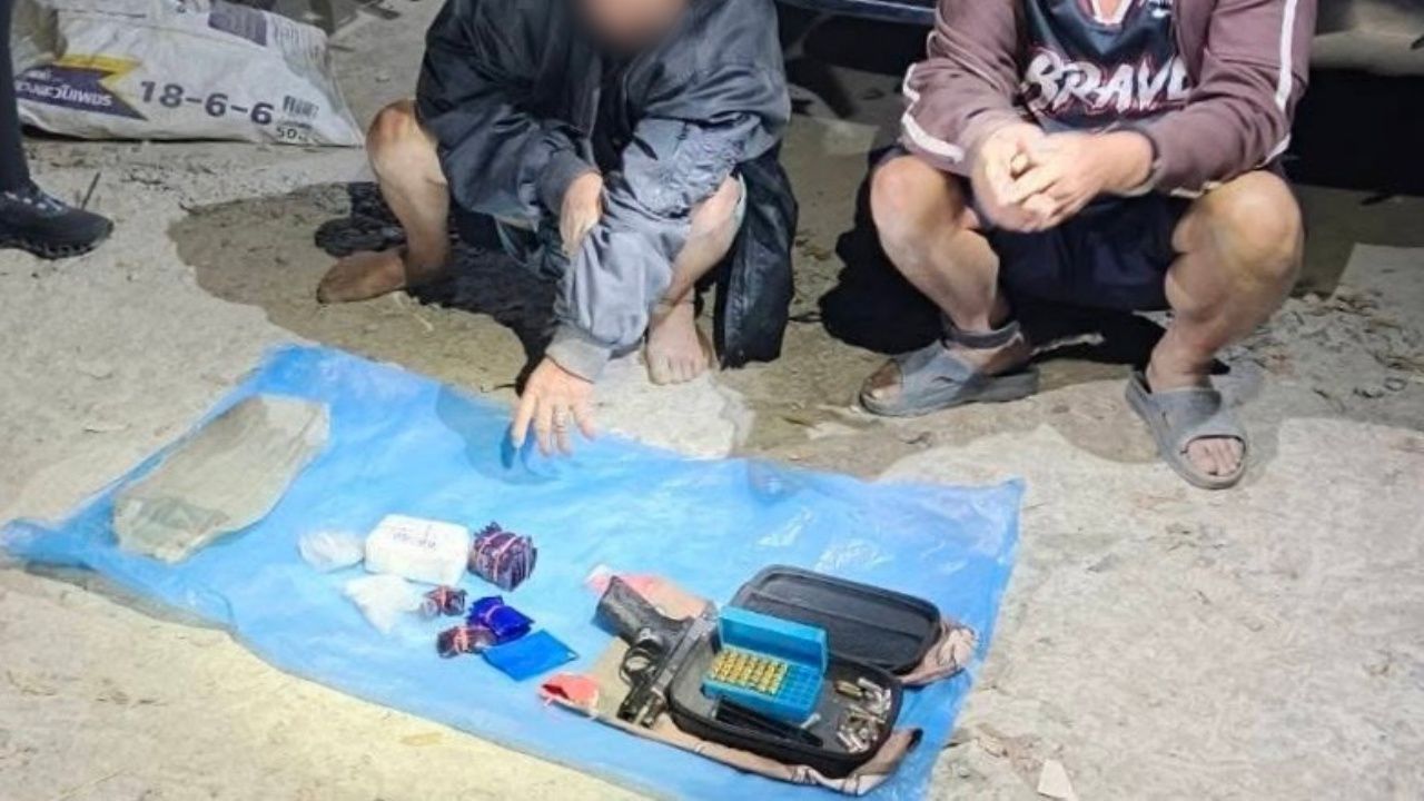 นอกจากนี้ยังค้นพบอาวุธปืนพกสั้น ขนาด 9 มม. ไม่มีทะเบียน จำนวน 1 กระบอก กระสุนปืน ขนาด 9 มม. จำนวน 72 นัด ซ่อนอยู่ในถังขยะหน้าบ้าน พร้อมกับยึดเครื่องชั่งดิจิตอล จำนวน 1 เครื่อง รถยนต์ ยี่ห้อ ISUZU สีเทา 1 คัน และโทรศัพท์มือถือ 1 เครื่อง