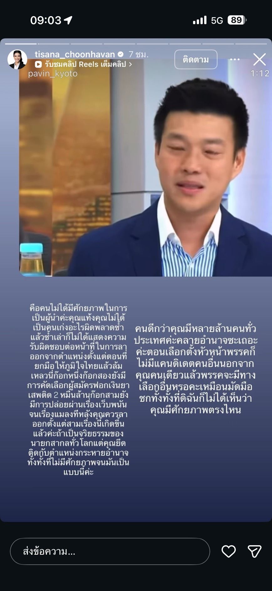 “ธิษะณา ชุณหะวัณ” ทิ้งบอมบ์อีกคน จี้ “ณัฐพงษ์” ลาออก ไร้ภาวะผู้นำ ซัดล้มเหลวยกมือให้ภูมิใจไทย คัดเลือกผู้สมัครฟอกยา ปล่อยผ่านเรื่องเว็บพนัน ถามไหนล่ะความรับผิดชอบในฐานะผู้นำประเทศ ชาวเน็ตขุดภาพถ่ายรูปคู่ “เท้ง” ให้กำลังใจผู้นำ