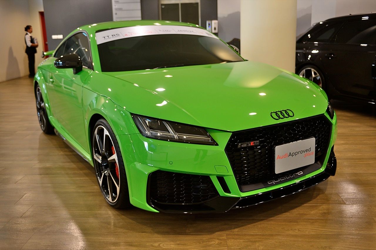 ระบบขับเคลื่อน 4 ล้อ Quattro hydraulic multi-plate Clutchจุดเด่นของการทดกำลัง คลัตช์แบบหลายแผ่นซ้อนกันทำให้การสูญเสียกำลังจากเกียร์ลงไปที่ล้อขับเคลื่อนลดลง Quattro ยังทำให้เกิดความสมดุลในการเฉลี่ยแรงบิด ส่งผลให้รถควบคุมได้ง่าย น้ำหนักรถทั้งคันที่ 1,450 กิโลกรัม กฏเกณฑ์ในการสร้างรถสปอร์ต จุดที่มีความสำคัญก็คือ น้ำหนัก ความพยายามในการลดทอนน้ำหนักทำให้ TT RS มีแรงม้าต่อน้ำหนักที่ต้องแบกรับที่ติดอันดับต้นๆในแวดวงรถสปอร์ตสมรรถนะสูง คาร์ลิปเปอร์เบรกหน้า 8 พอต เบรกหลังซิงเกิลพอต พลังในการเบรกของรถแรงต้องเชื่อมโยงกับไดนามิกส์ TT RS จัดคาร์ลิปเปอร์หน้าแบบ 8 ลูกสูบหรือ 8 พอต พร้อมจานเจาะรูระบายความร้อนขนาด 370 มิลลิเมตร เบรกหลังยังคงใช้แบบซิงเกิลพอต กับจานเบรก 302 มิลลิเมตร แบบมีร่องระบายความร้อน คาร์ลิปเปอร์หน้าใหญ่ยักษ์พ่นสีแดงแปะตราสัญลักษณ์ RS ราคามือสองของ TT RS Coupé รุ่นมาตรฐาน ไมล์แค่ 5,100 กิโลเมตร จากราคาป้ายแดงที่ 5,449,000 บาท เหลือ 4,790,000 บาท