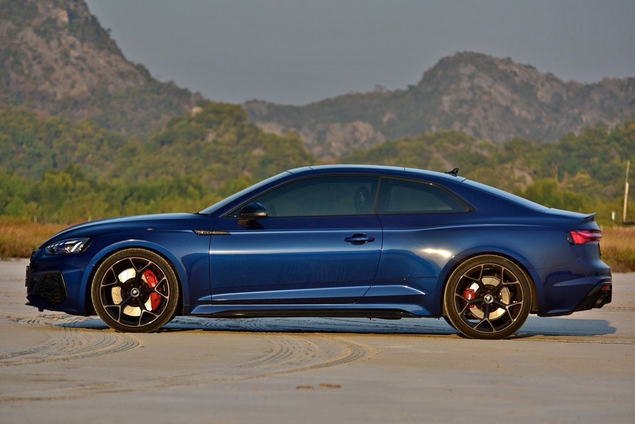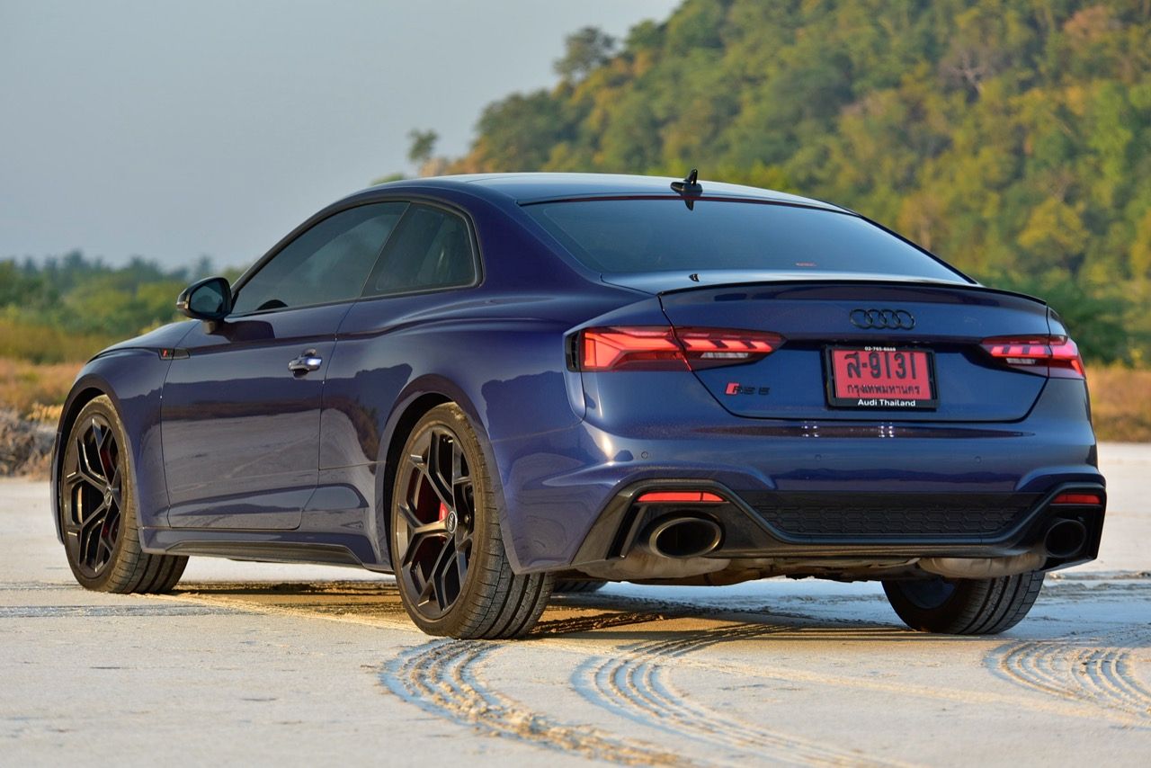 การออกแบบ RS5 Coupe เป็นรถคูเป้ที่สวยงามสมส่วน ไม่มีตรงไหนที่ดูขาดหรือเกิน เป็นการรวบรวมรูปทรงหกเหลี่ยมและความโค้งมนผสมผสานเข้าด้วยกันจนกลายเป็นรถสปอร์ตที่งดงามและมีความเรียบง่าย ระบบขับเคลื่อนที่ทรงพลังทำให้คนที่เคยขับรับรู้ว่าสมรรถนะของ RS5 Coupe นั้นยอดเยี่ยมแค่ไหน เมื่อเทียบกับ A5 รุ่นธรรมดา RS5 มีไฟหน้าที่เพรียวบาง กระจังหน้าขนาดใหญ่ ช่องระบายอากาศด้านหน้าของชุดแต่ง Competition ส่วนล่างที่กว้างขึ้น ตราสัญลักษณ์ Audi สีดำ ล้ออัลลอยลายสวยขอบ 20 นิ้ว ท่อไอเสียทรงรี สำหรับ RS5 รุ่นปี 2023 Audi จัดทางเลือกใหม่ ด้วยแพ็คเกจชุดแต่ง Competition ล้อรูปตัว Y ขนาด 20 นิ้ว ชุดเบรกหน้า 6 พอต จานเบรกใหญ่ยักษ์ ระบบกันสะเทือน audi dynamic ride control suspension คอยล์สปริง โช้คอัพไฟฟ้า พร้อมเหล็กกันโคลงพิเศษ ท่อไอเสีย RS Sport ยาง continental sport contact 6 ไซล์ 275/30ZR20 เท่ากันทั้งด้านหน้าและด้านหลัง ตกแต่งภายนอกด้วยชิ้นส่วนสีดำที่เน้นความดุดัน โดยเฉพาะขอบชิ้นงานบริเวณส่วนบนของฝาท้าย
