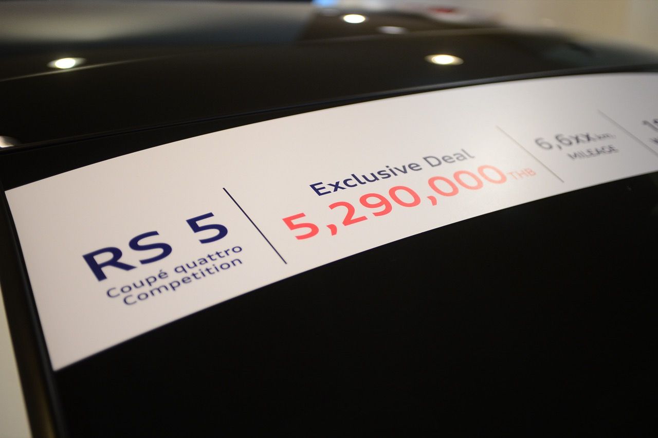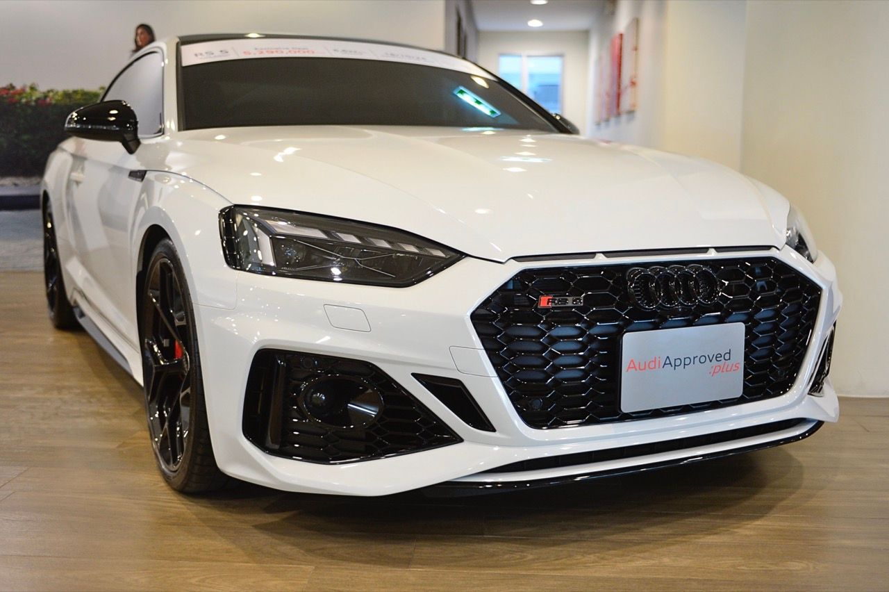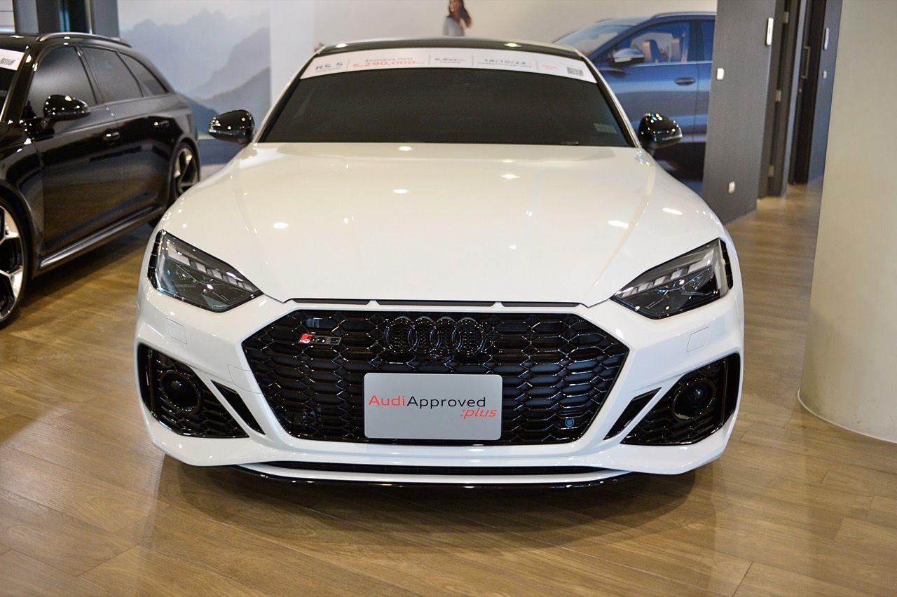 สำหรับ RS5 Coupe quattro มีสองคัน สีขาวและสีน้ำเงินสุดสวย ความพิเศษตรงที่รูปแบบของตัวถังและระบบขับเคลื่อน รุ่นที่บริษัทไมซ์สเตอร์ ตัวแทนจำหน่ายรถยนต์ Audi ในไทย นำเข้ามาขายคือรุ่น Coupe Quattro Competition เครื่องยนต์ 2.9 ลิตร V6 เทอร์โบ มีแรงม้า 450 ตัว ระบบขับเคลื่อน 4 ล้อ Quattro พร้อมระบบส่งกำลัง เกียร์ออโต้ทวินคลัตช์ S-Tronic 8 สปีด การตกแต่งในรูปแบบ Coupe quattro Competition ด้วยอุปกรณ์เวอร์ชั่นพิเศษจาก Audi Sport มาตรฐานมาจากโรงงาน ราคาป้ายแดงนำเข้า 6,599,000 บาท คันสีขาว พอมาเป็นรถยนต์มือสองสภาพเยี่ยม ไมล์ 6,600 กิโลเมตร ราคาเหลือ 5,290,000 บาท ส่วนคันสีน้ำเงิน ไมล์ 12,000 กิโลเมตร ราคาเหลือ 4,990,000 บาท สิ่งที่ทำให้ RS5 มีความน่าสนใจก็คือ เครื่องยนต์เบนซินเทอร์โบ V6 รอบจัด กับแรงบิดแบบจัดเต็ม 600 นิวตันเมตร ตัวเลขอัตราเร่ง 0-100 อยู่ในอันดับหัวแถวของรถคูเป้เยอรมันราคาป้ายแดงไม่เกิน 7 ล้านบาท