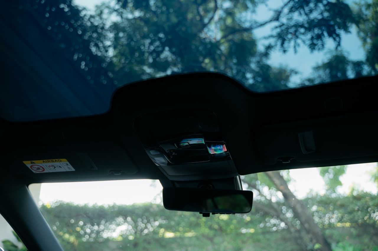 - หลังคากระจกพาโนรามิกกลาสรูฟพร้อมฟังก์ชันปรับลดแสงอัจฉริยะ เสริมบรรยากาศในห้องโดยสารให้โปร่งสบาย พร้อมเคลือบสาร Low-e ช่วยป้องกันความร้อนและรังสียูวีได้ 99% เพิ่มความสบายแม้ขณะอยู่กลางแดด จึงไม่จำเป็นต้องใช้ม่านบังแดด