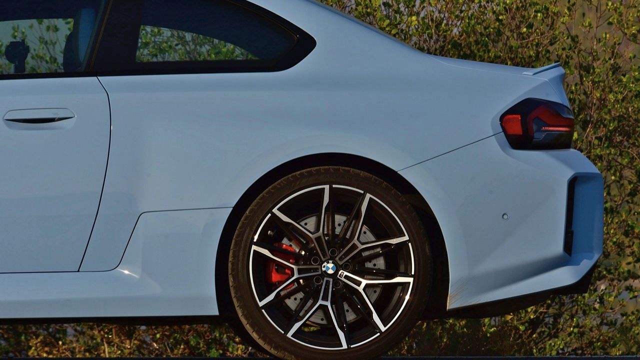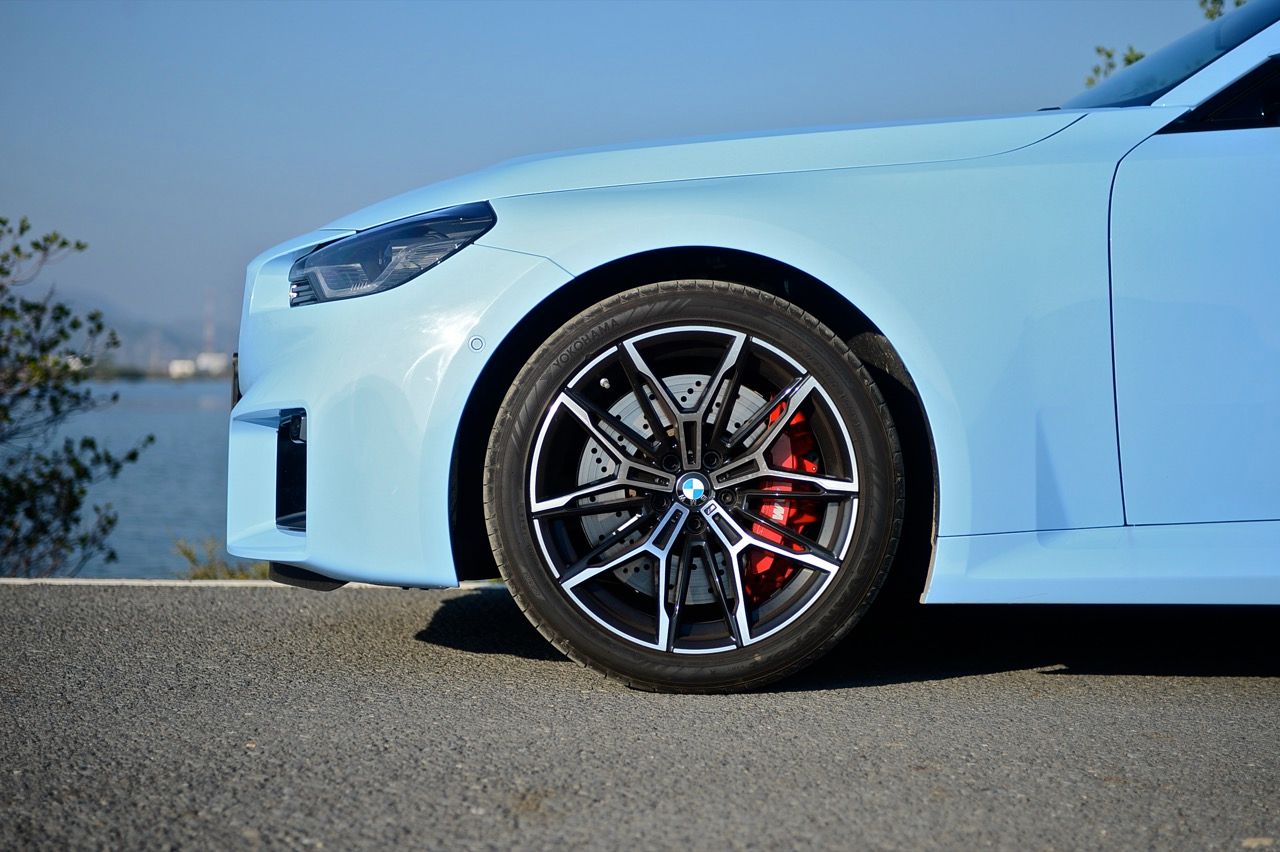 มิติตัวถังของ M2 LCI มีขนาดความยาว 4,579 มิลลิเมตร กว้าง 1,887 มิลลิเมตร และ สูง 1,402 มิลลิเมตร สูงจากพื้น 121 มิลลิเมตร ระยะฐานล้อ 2,745 มิลลิเมตร หนัก 1,730 กิโลกรัม ล้อขนาด 19 นิ้วที่ด้านหน้า และล้อขอบ 20 นิ้วที่ด้านหลัง ซึ่งเป็นล้อขับเคลื่อน การคิดคำนวณถึงล้อและยางที่มีความเหมาะสมนั้นเหมือนกับ M3 G80/ และ M4 G82 ยาง Yokohama Advan หน้าไซส์ 275/35 ZR19 100Y ยางหลัง 285/30 ZR20 109Y หลังคาคาร์บอนไฟเบอร์ที่เป็นอุปกรณ์เสริม ปกติแล้วจะมีอยู่ในรถ M ที่ฮาร์ดคอร์มากกว่านี้ แต่ตอนนี้หลังคาวัสดุผสมน้ำหนักเบา กลายเป็นตัวเลือกที่เหมาะสมจากโรงงานสำหรับ M2 ใหม่ ไม่มีคำอธิบายเกี่ยวกับการลดน้ำหนักเมื่อเลือกหลังคาคาร์บอนไฟเบอร์ แต่น้ำหนักจะลดลง 2 กิโลกรัมเมื่อเลือกออปชันนี้ แต่ BMW Thailand ใส่มาให้แบบไม่ต้องควักเพิ่ม