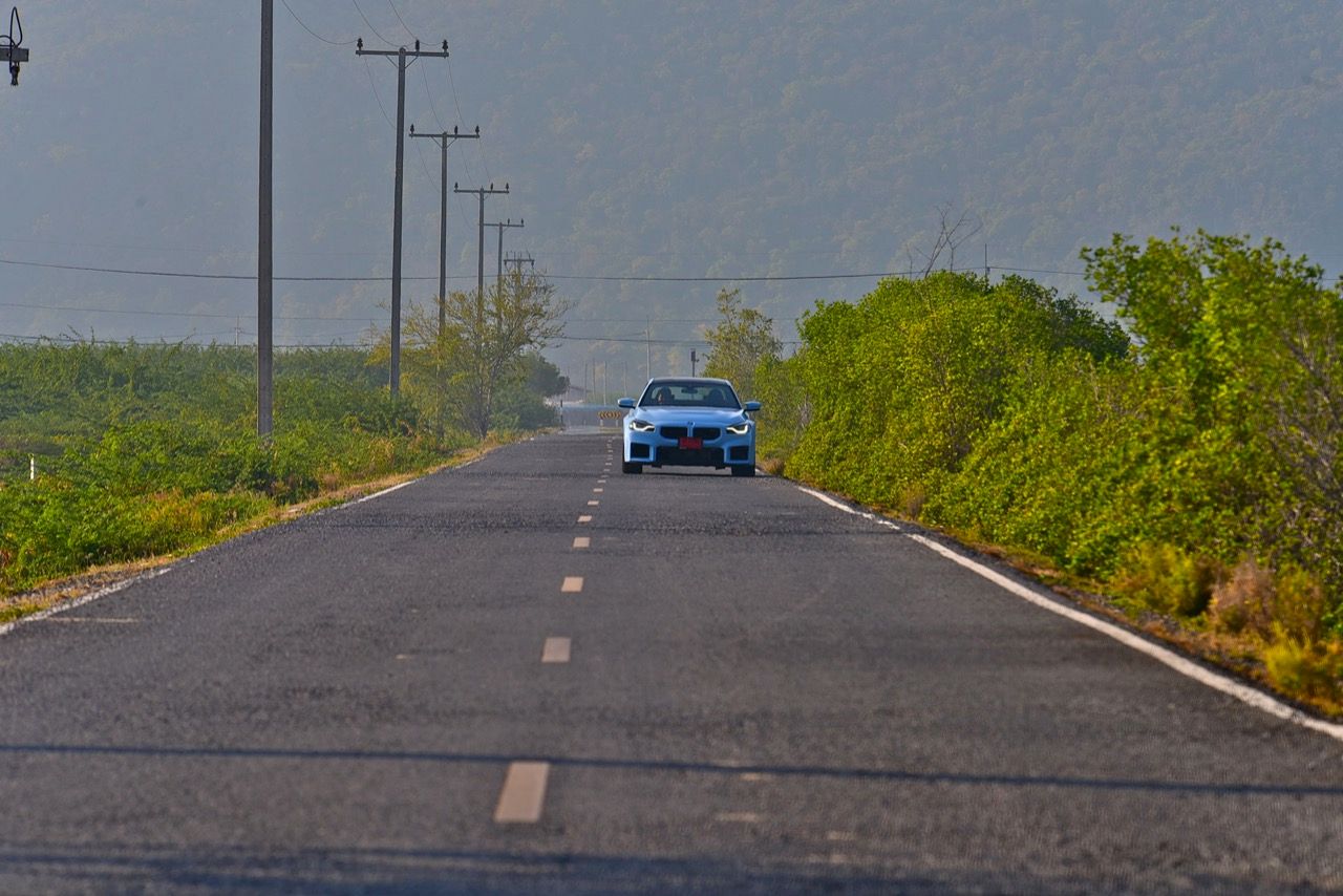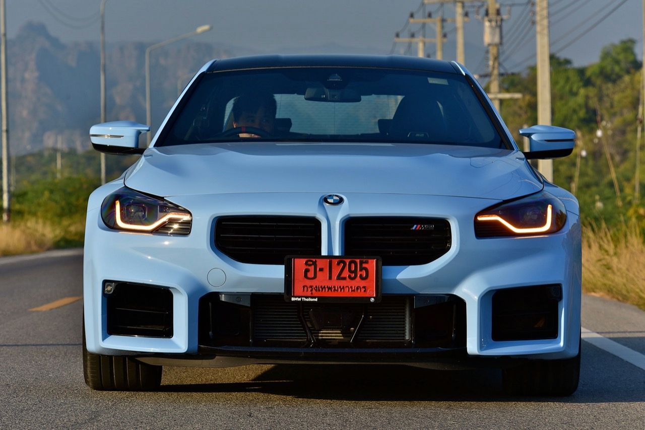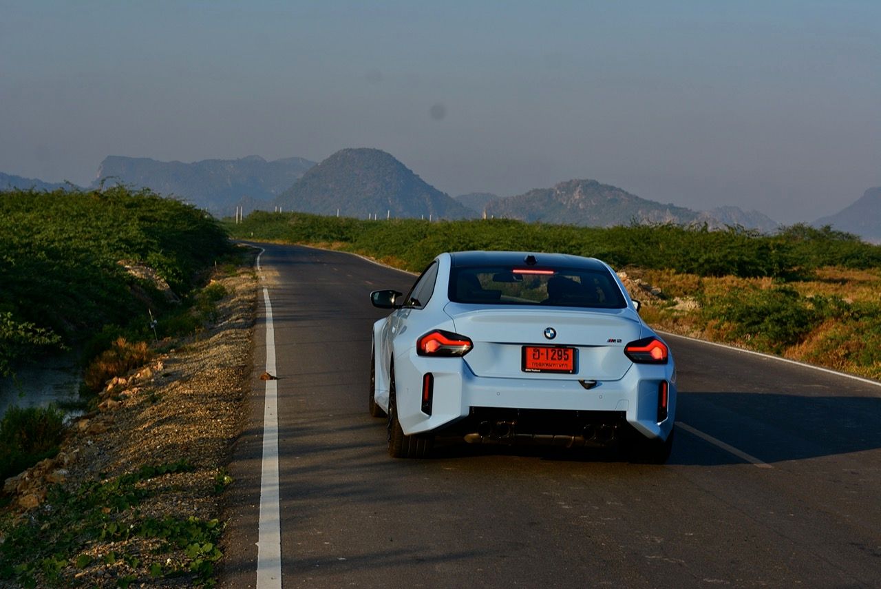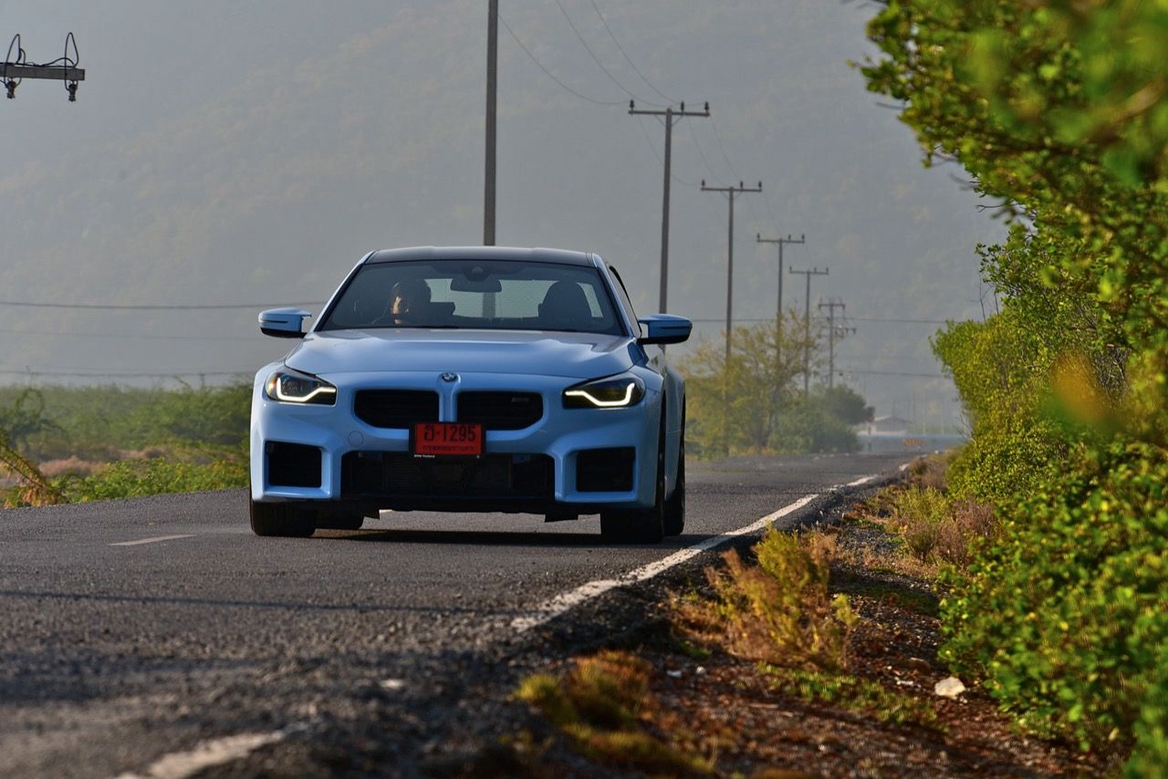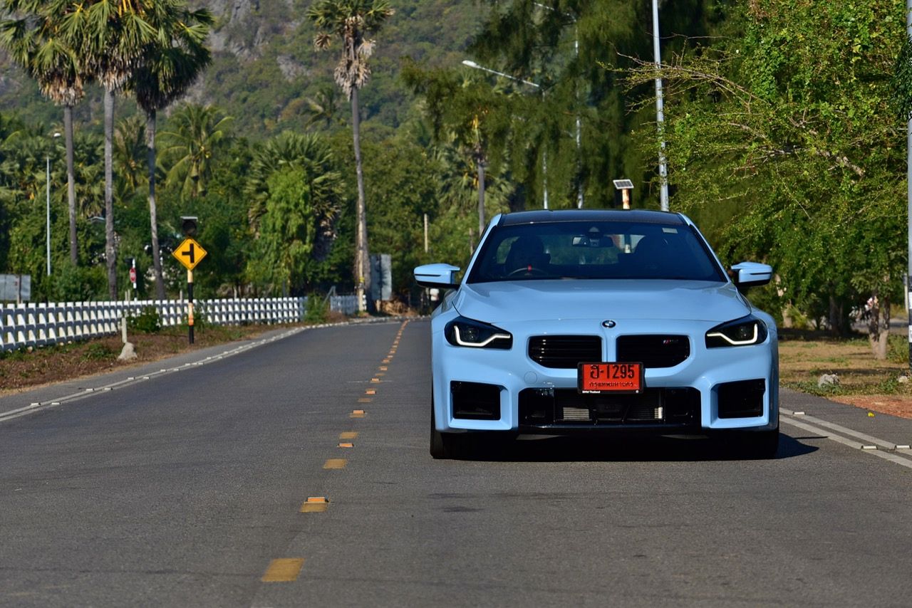 ฐานล้อที่ยาวขึ้นบวกระยะฐานล้อที่ขยายออกด้านข้าง ยางสปอร์ต กับช่วงล่าง Adaptive M บวกพวงมาลัย M servotronic ทำให้ทุกอาการถ้าไม่ใส่จนล้นเกินไปก็ถือว่าควบคุมได้ไม่ยาก M2 LCI เป็นรถคูเป้ที่มุดเข้าโค้งโดยมีอาการอันเดอร์สเตียร์บางๆ ขึ้นอยู่กับการคุมคันเร่งของคนขับ ส่วนการควบคุมบอดี้นั้นโคตรจะมืออาชีพ ไม่ใช่ Civic Type R ที่วัยรุ่นไทยโหยหา หรือการเปลี่ยนเกียร์ที่ยอดเยี่ยมของ Porsche 911 แต่คุ้มค่ากับการใช้จ่าย 6.9 ล้านบาท เพื่อแลกกับรถ M คันเล็กที่ขับสนุก รูปทรงของระบบกันสะเทือนก็มีส่วนช่วยเช่นกัน แม้ว่าจะมีการเปลี่ยนแปลงบางอย่างก็ตาม สปริงหน้ามีความแข็งกว่าและสปริงหลังนุ่มกว่าเมื่อเทียบกับ M4 เพื่อปรับปรุงการเลี้ยวเข้าครั้งแรกและรักษาความเป็นกลางของ M2 เมื่อเข้าโค้ง นอกจากนี้ยังมีการเสริมกำลังที่เสา C และบริเวณท้ายรถเพื่อปรับปรุงความแข็งแกร่งของแชสซีโดยรวม การขับขี่นั้นตึงแต่ไม่เคยชน และตัวแชสซีเองก็มีความแข็งแกร่งพอๆ กับวัสดุโมโนค็อกคาร์บอนไฟเบอร์ด้านนี้ โชคดีที่การปรับระบบกันสะเทือนเพิ่มเติมได้ช่วยลดการเด้งที่อาจเกิดขึ้นจากฐานล้อที่สั้นลง แม้จะตั้งค่าระบบกันสะเทือนแบบปรับตัวได้นุ่มนวลที่สุด แรงกระแทกก็ยังเข้าไปในห้องโดยสารได้ แต่จำไว้ว่านี่คือรถ M ตัวจริง ไม่ใช่รถหรูนั่งนุ่มนิ่มสบาย