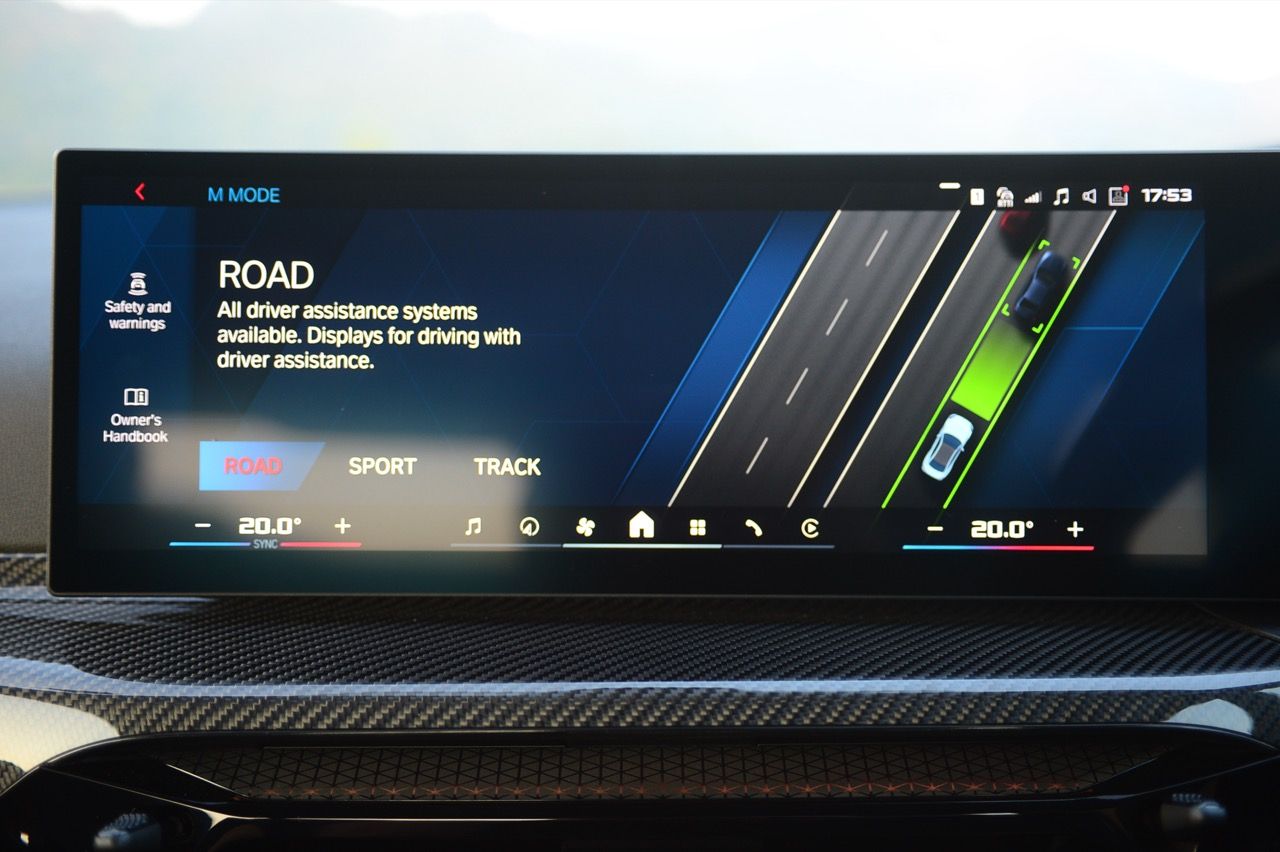 ในโหมดถนน เครื่องยนต์ S58 และท่อระบาย M ไม่ได้ส่งเสียงรบกวน แรงบิดสำหรับการพุ่งทะยานอย่างไม่ลดละยังมาเต็มเหมือนเดิม แรงบิดสูงสุดอยู่ที่ 5,870 รอบต่อนาที การแซงในโหมดเริ่มต้น จึงเป็นเรื่องง่ายเหมือนพลิกฝ่ามือ แม้จะมีกำลังและแรงบิดมหาศาล แต่ก็มีการยึดเกาะที่มากกว่า ท้ายรถออกง่ายกว่าเดิมมาก และดูเป็นวัยรุ่นว้าวุ่นมากกว่ารถ M รุ่นแรก เมื่อปรับเป็นโหมด Road M2 G87 จะกลายเป็นยานพาหนะขนาดเล็กที่ดูสบายกว่าเดิม เงียบ และเป็นมิตรกับการขับในเมืองมากกว่า M4 เกียร์อัตโนมัติ 8 สปีดแบบเดียวกับ M4 เกือบจะดีพอๆ กับเกียร์คลัตช์คู่ M DCT ของ M4 CS (F82) โดยเฉพาะอย่างยิ่งในการชิฟเกียร์ลง แต่ยังไม่คมชัดเท่ากับการเปลี่ยนเกียร์ของ Porsche PDK หรือ Mercedes MCT