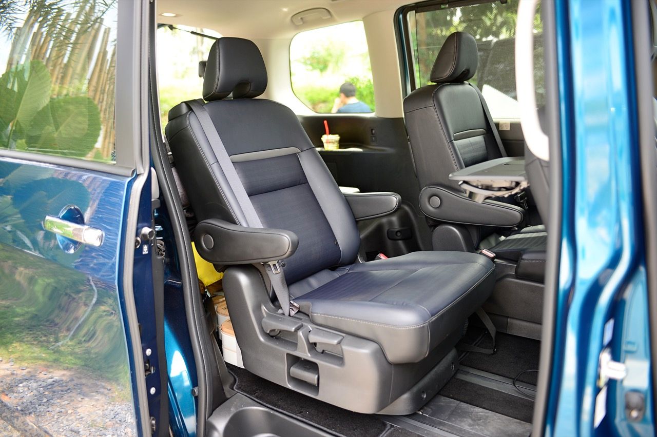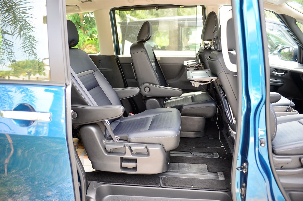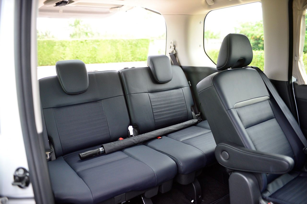 ห้องโดยสารที่กว้างขวางมากที่สุดในกลุ่มรถแบบเดียวกัน มีพื้นที่กว้างขวางสำหรับผู้โดยสารทุกคนในที่นั่งทั้ง 3 แถว โดยในที่นั่งแถวที่ 2 เป็นที่นั่งแบบ Captain seat ที่มีพื้นที่วางขามากขึ้น เบาะที่นั่งสามารถปรับได้อิสระ 4 ทิศทาง (เลื่อนหน้า-หลัง ซ้าย-ขวา) และแยกออกจากกันได้ เพื่อเพิ่มพื้นที่ระหว่างที่นั่ง ช่วยให้ผู้โดยสารสามารถเคลื่อนไหวได้สะดวก แต่ยังคงมีความเป็นส่วนตัวสูง ส่วนแถวที่ 3 รองรับ 3 ที่นั่ง เบาะมีความหนานั่งสบาย สามารถปรับพนักพิงให้เอนราบได้ รวมถึงปรับเลื่อนได้อย่างอิสระ สามารถเก็บกระเป๋าเดินทาง หรือสัมภาระขนาดใหญ่ทางด้านหลังโดยยังคงมีพื้นที่กว้างขวางนั่งสบายในเบาะที่นั่งแถว 3 แต่ก็พับเบาะนั่งเก็บได้เพื่อเพิ่มพื้นที่เก็บสัมภาระด้านหลังได้อีกด้วย กระจกบานใหญ่รอบคันทั้งกระจกหน้า และหน้าต่างด้านข้าง ให้ทัศนวิสัยรอบด้านที่ดีเยี่ยม รวมทั้งให้ความรู้สึกโปร่ง โล่ง ช่วยลดอาการเมารถ ให้ความเพลิดเพลินกับทิวทัศน์ด้านนอกได้เต็มที่