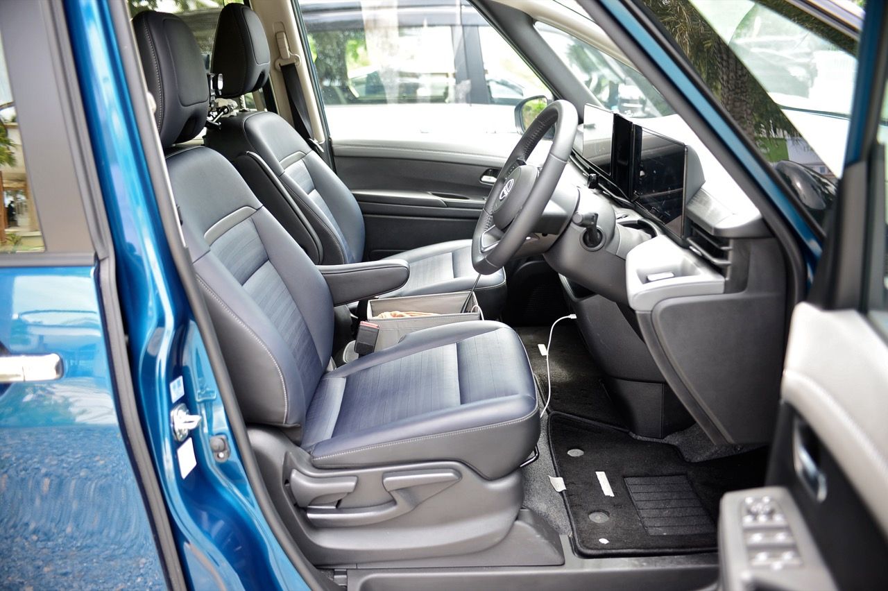 แม้จะมีกระจกบานใหญ่รอบคัน แต่ไม่ร้อน เพราะหน้าต่างผู้โดยสารตอนหลังเป็นแบบ UV Cut ช่วยลดความร้อน และรังสี UV ให้ความสบายแก่ผู้โดยสารทุกที่นั่งแม้ขับขี่ในเมืองร้อนที่มีแสงแดดจ้า นอกจากนี้ กระจกบานหน้า และหน้าต่างประตูคู่หน้า ยังเป็นแบบ Acoustic Glass หนา 2 ชั้น ที่ช่วยลดเสียงรบกวนจากภายนอกได้อย่างมีประสิทธิภาพ ทำให้ห้องโดยสารเงียบเพิ่มความสุนทรีย์สำหรับผู้โดยสารทุกคนตลอดเส้นทาง การออกแบบให้ตัวรถกว้างและสูง ทำให้ห้องเก็บสัมภาระด้านหลังมีพื้นที่กว้างขวาง เก็บของได้มากโดยไม่ต้องพับเบาะหลัง เมื่อต้องขนสัมภาระขนาดใหญ่ สามารถพับเบาะได้ รวมทั้งยังมีช่องเก็บของขนาดใหญ่ใต้พื้นพร้อมแผ่นปิดเพื่อความเรียบร้อย