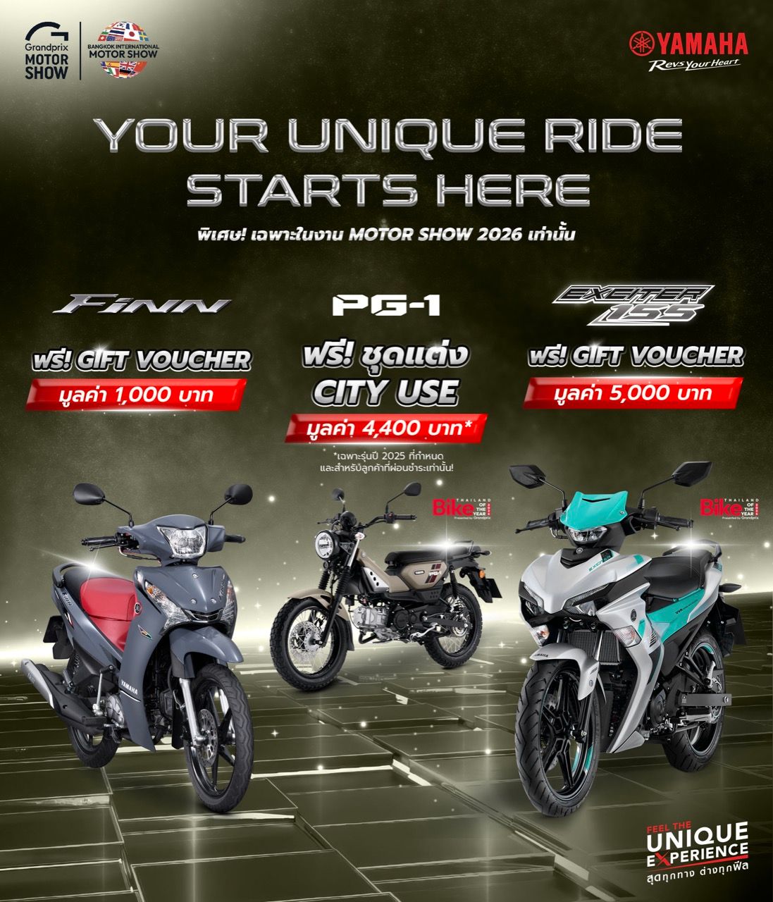 สัมผัสประสบการณ์สุดยูนีคที่บูท YAMAHA THE UNIQUEVERSE อิมแพค ชาเลนเจอร์ ฮอลล์ 1 เมืองทองธานี ระหว่างวันที่ 25 มีนาคม – 5 เมษายน 2569
