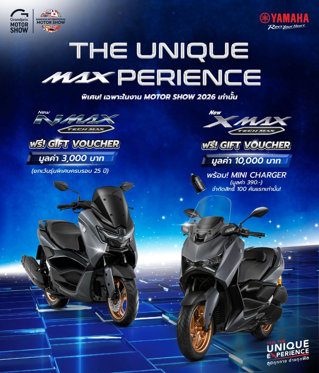 - YAMAHA XMAX / XMAX Tech MAX รับส่วนลด 10,000 บาท พร้อม Mini Charger (Mini Charger จำกัด 100 คันแรก)