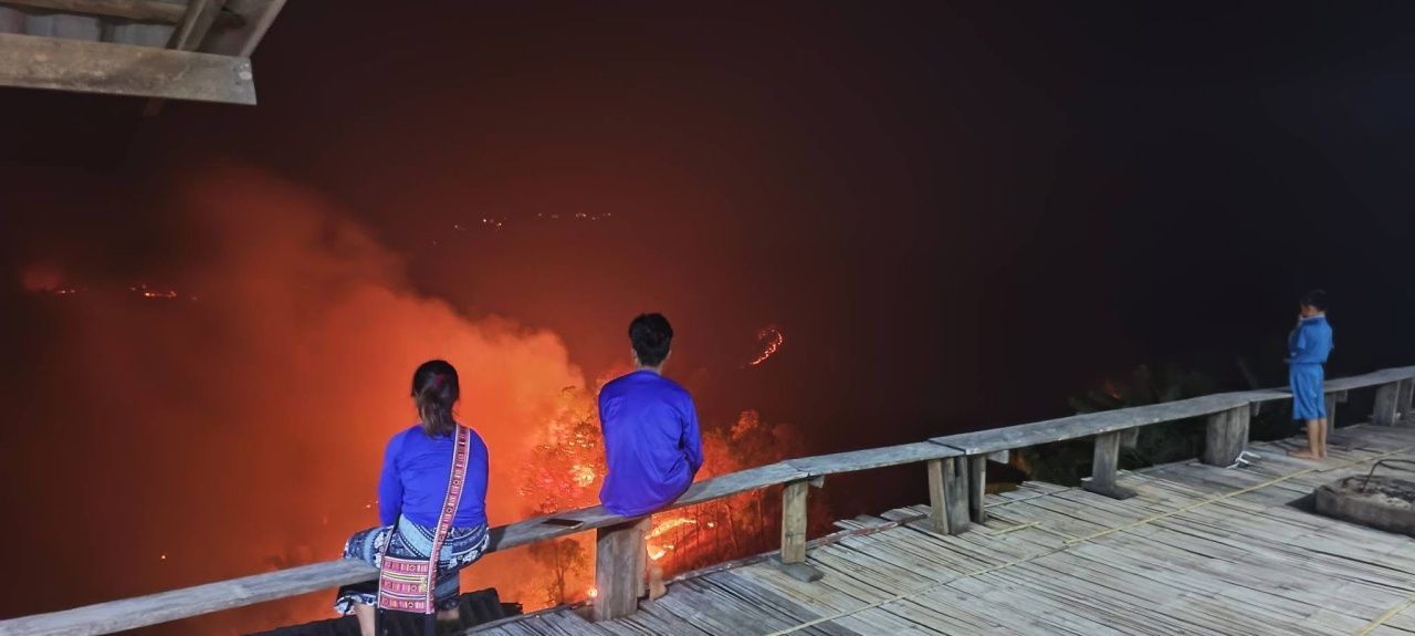 โดยในเพจ ได้ระบุข้อความ “จุดชมทะเลหมอก กลายเป็นทะเลเพลิง #เชียงใหม่ ชาวบ้านลุ้นระทึกไฟป่า ที่ #บ้านห้วยกุ๊บกั๊บ อ.แม่แตง ที่นี่มีทีมดับไฟของหมู่บ้าน และหน่วยงาน อบต. ช่วยดับไฟ และทำแนวกันไฟอยู่ตลอด แต่เนื่องจากมีลมแรง ทำให้ไฟที่ดับแล้วปะทุขึ้นอีกครั้งกลางดึก